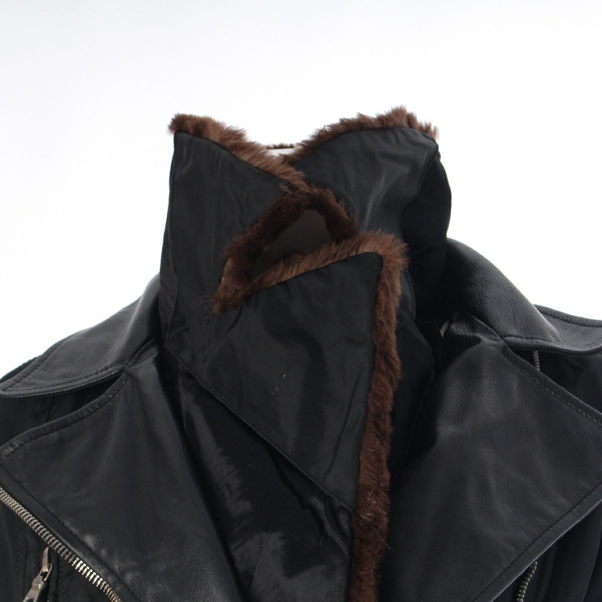 ダメージ箇所: 前身頃:スレ・汚れあり ウエスト(ベルト):汚れ・キズあり 後身頃:汚れ・ホツレあり 袖:汚れ・ホツレあり 内側:毛羽立ちあり ニオイ:保管臭、