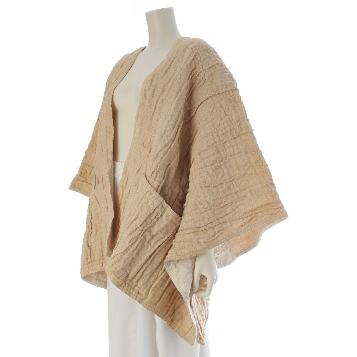 他の画像を見る ISSEY MIYAKE イッセイミヤケ 80s 1984 リネン コットン 筆タグ シワ加工 平面 羽織り 和服 ジャケット ベージュ 9 お気に入りに登録する 当店特別価格 ¥ 61,600 税込 円 56,000円