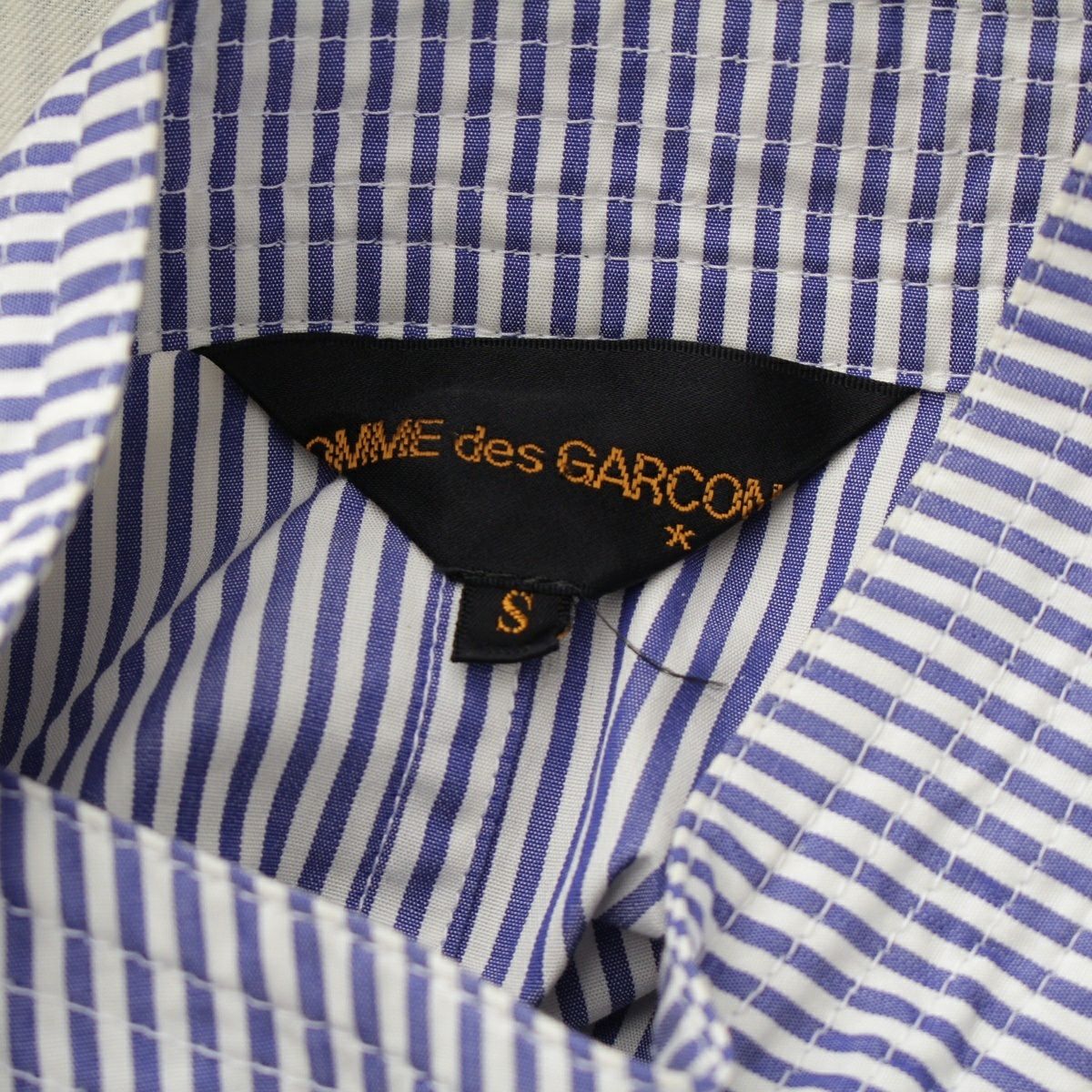 他の画像を見る COMME des GARCONS コムデギャルソン AD1998 98AW コットン FUSION期 切替 ストライプ バトルドレス フック ジャケット GJ-04015S グレー ブルー ホワイト S お気に入りに登録する 当店特別価格 ¥ 85,800 税込 円 78,000円