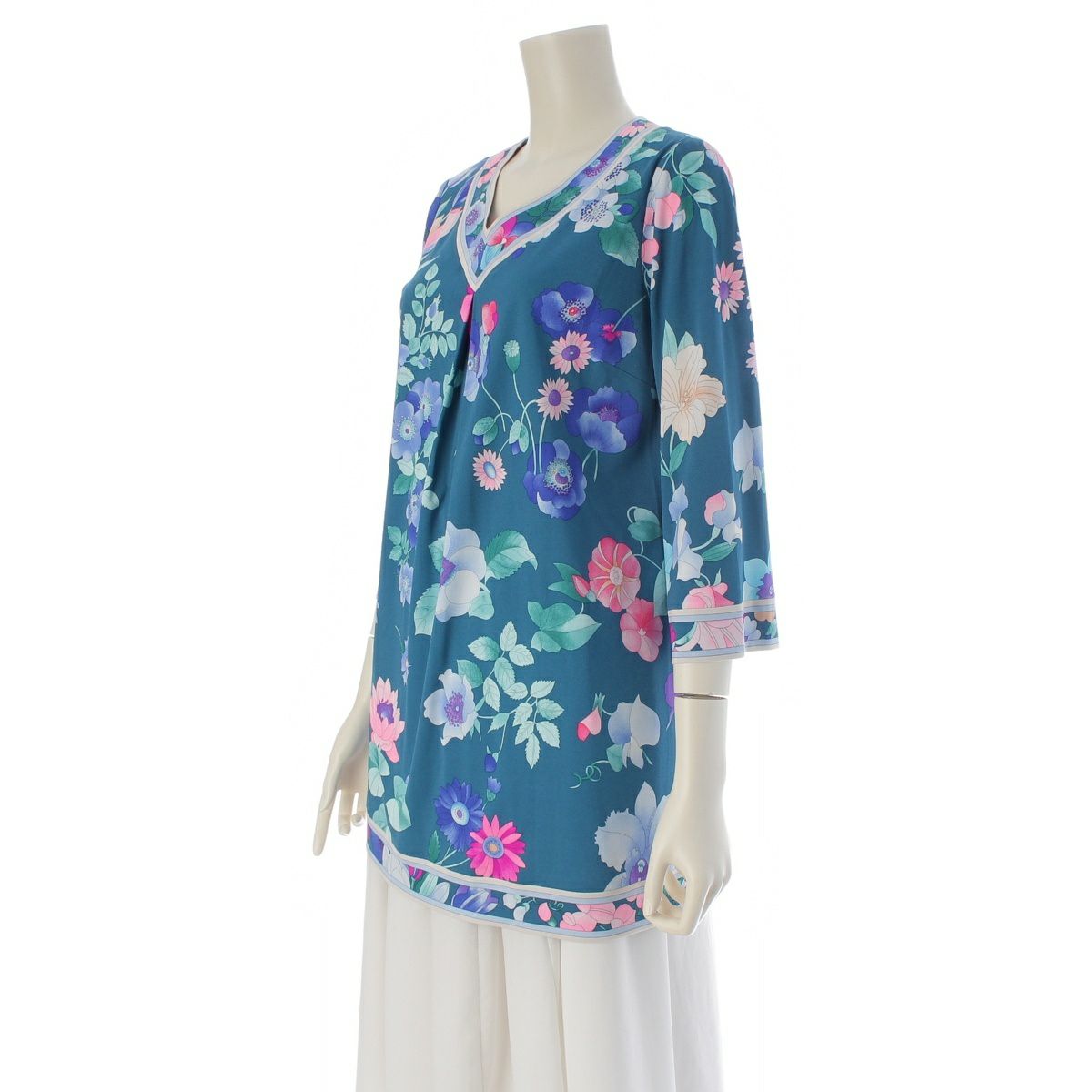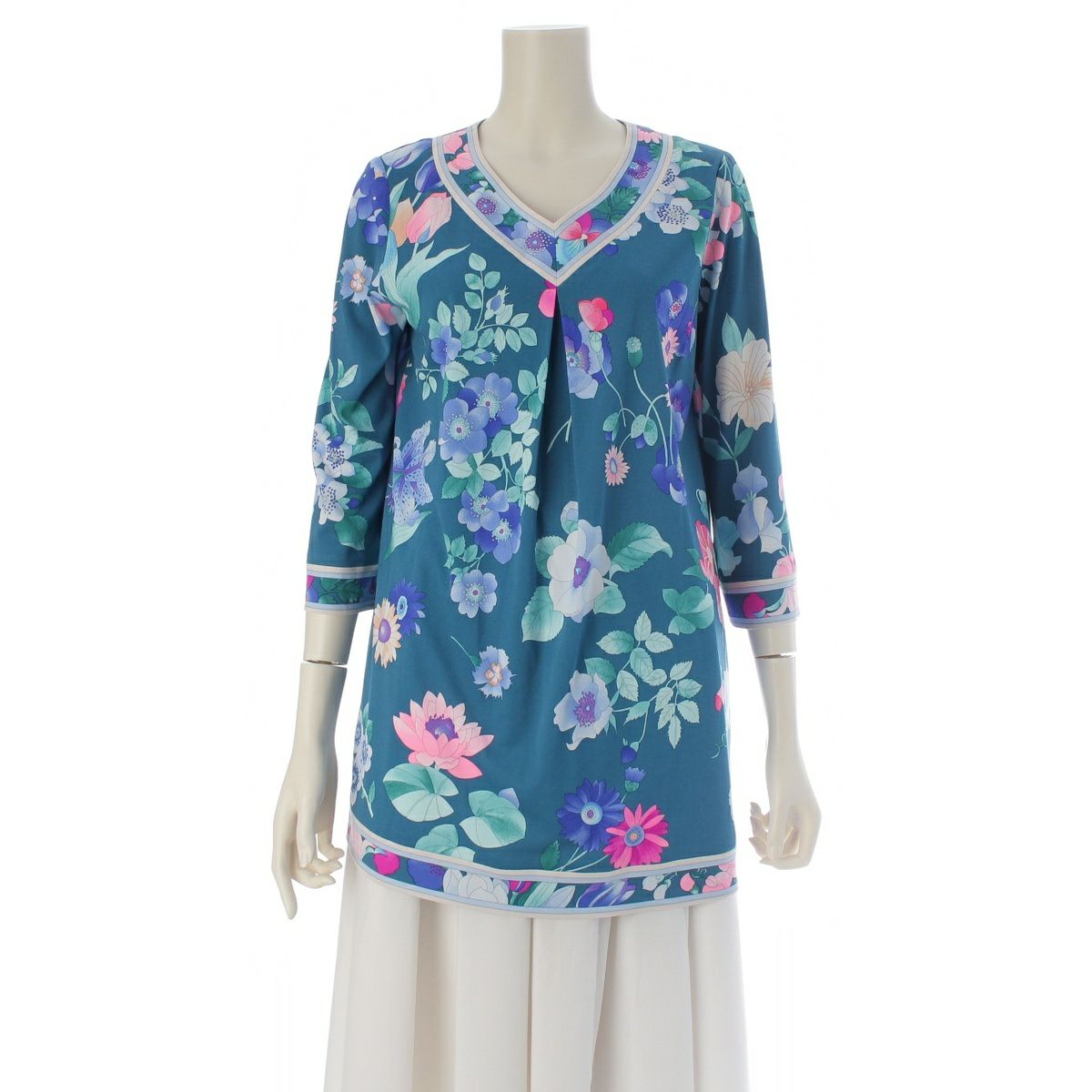 他の画像を見る LEONARD レオナール カンカン素材 Vネック 七分袖 チュニック トップス グリーン 38 在庫切れ お気に入りに登録する 当店特別価格 ¥ 49,500 税込 円 45,000円