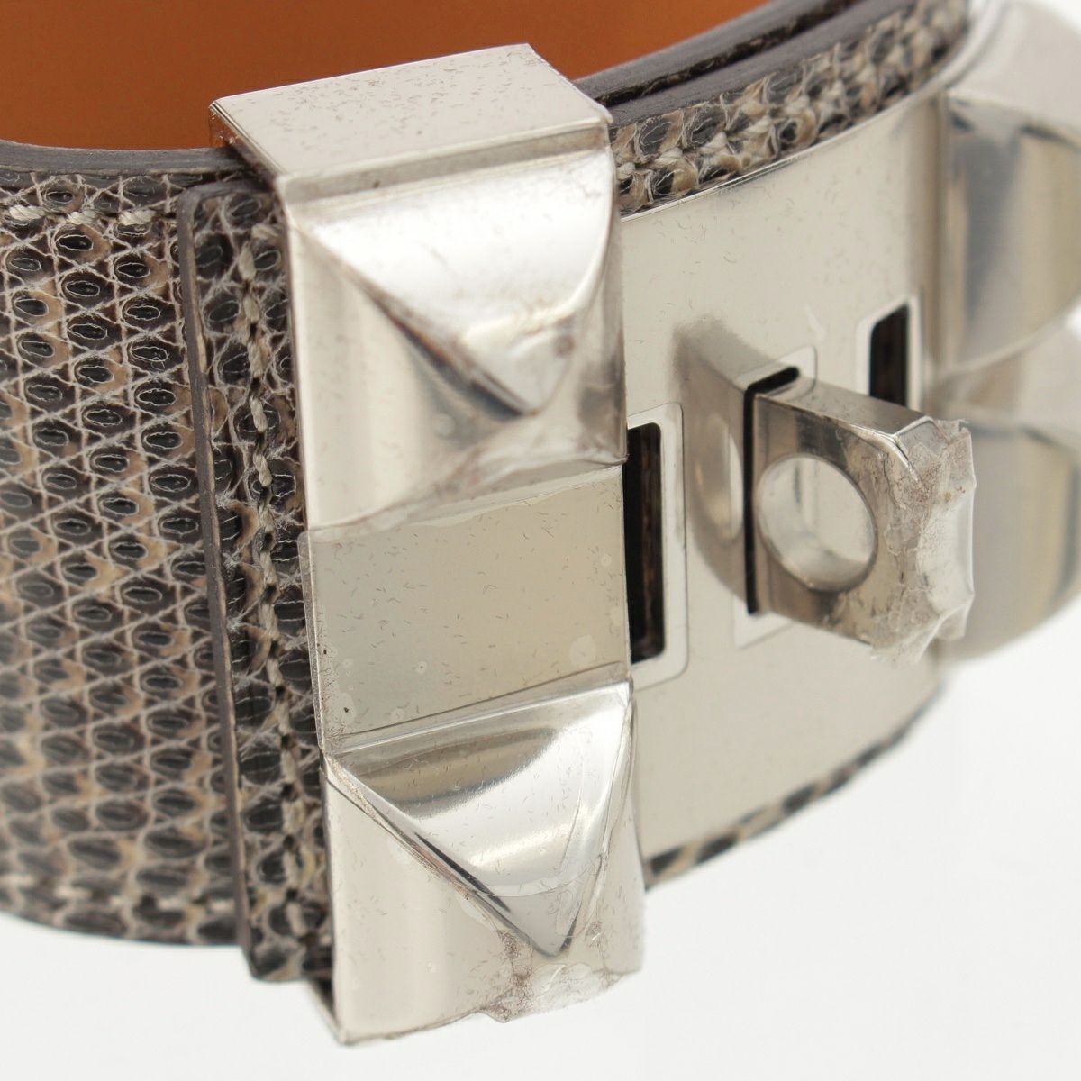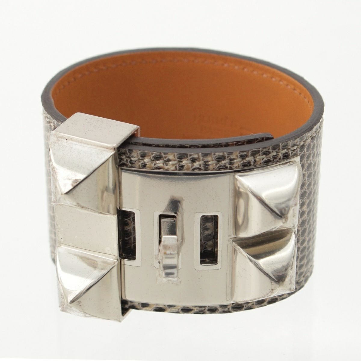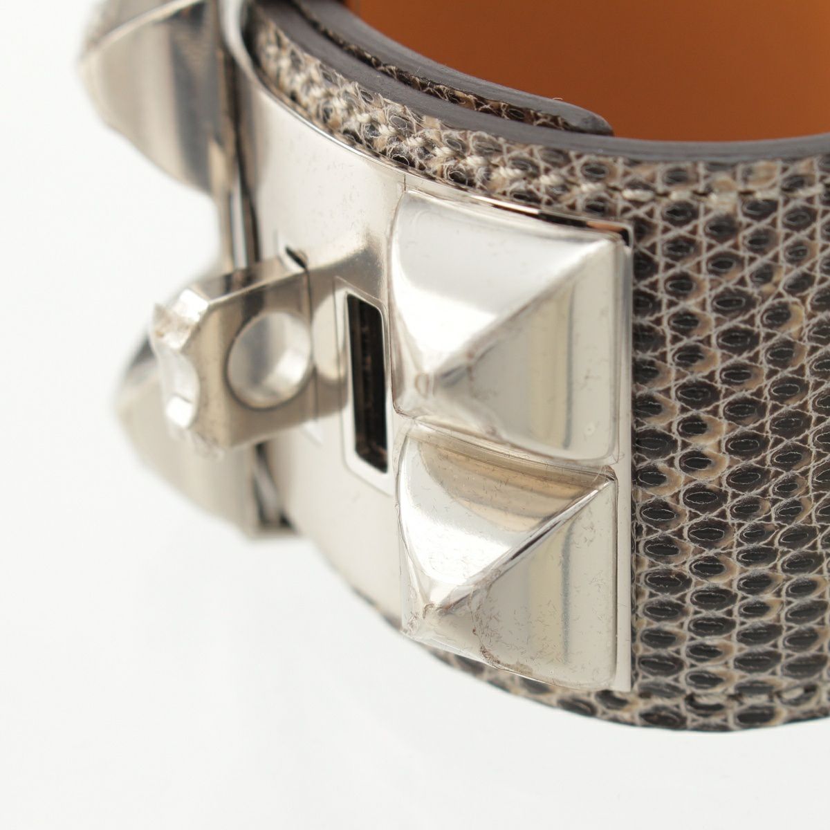 他の画像を見る HERMES エルメス X刻印 リザード コリエドシアン ブレスレット バングル アクセサリー ベージュ ブラウン系 S お気に入りに登録する 当店特別価格 ¥ 77,000 税込 円 70,000円