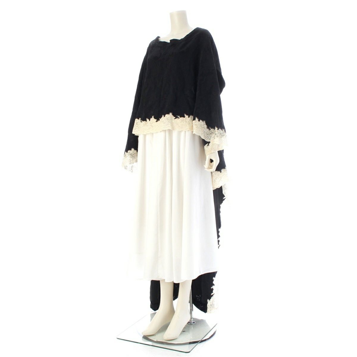 クリスチャンディオール アセテート ビスコース ガリアーノ期 ボタニカル柄 ドレス レース ワンピース ブラック 38