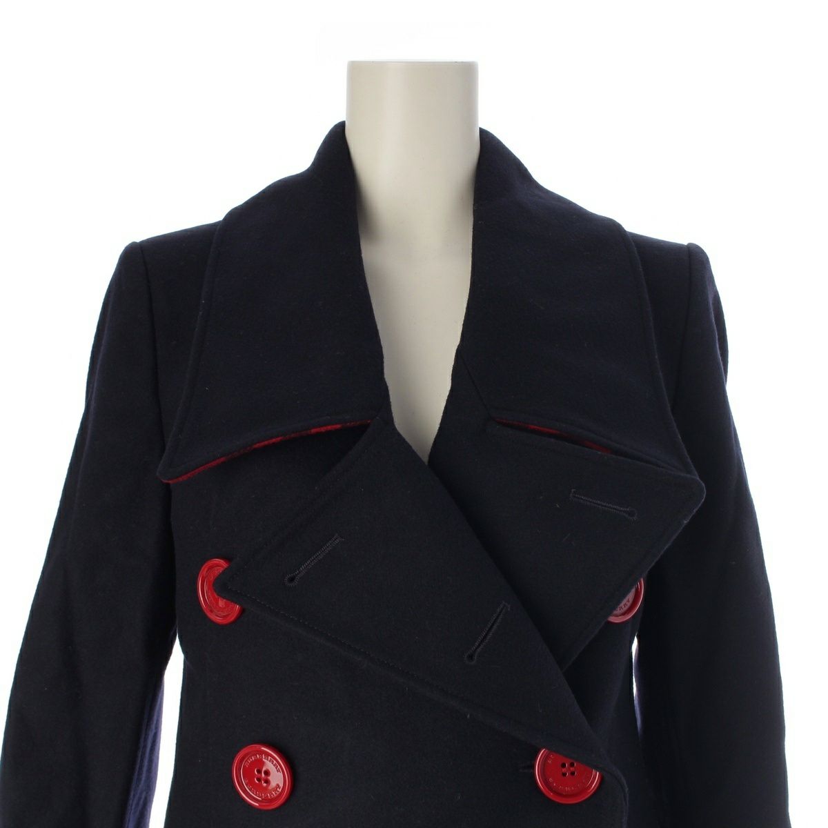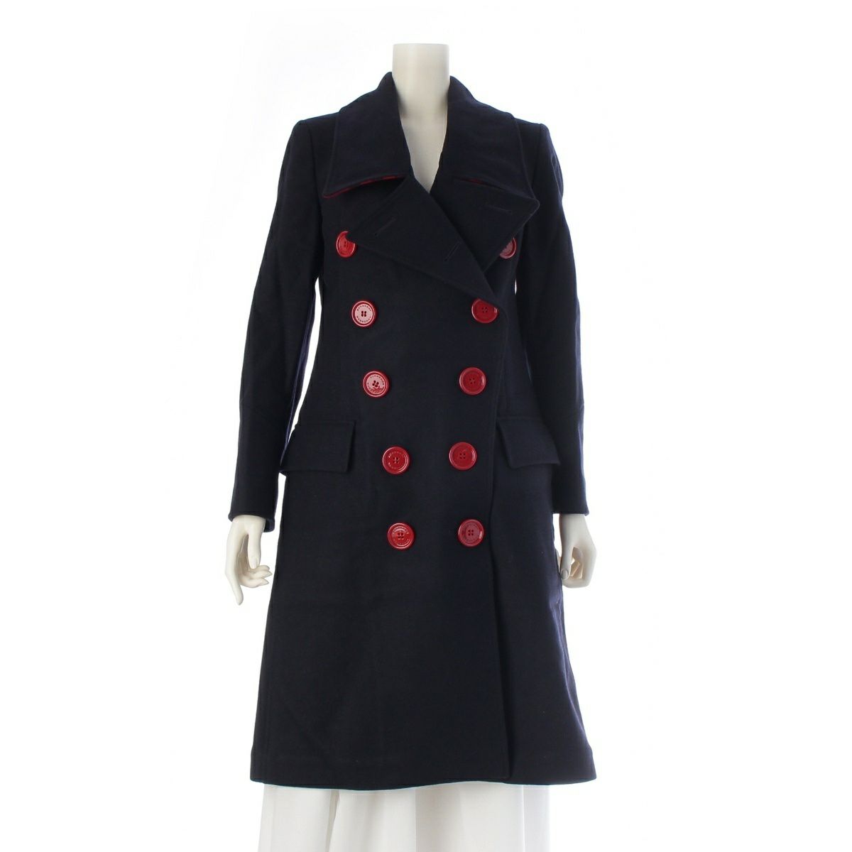 バーバリー ウール 赤ボタン 襟裏チェック ロング コート アウター 4051746 ネイビー 38