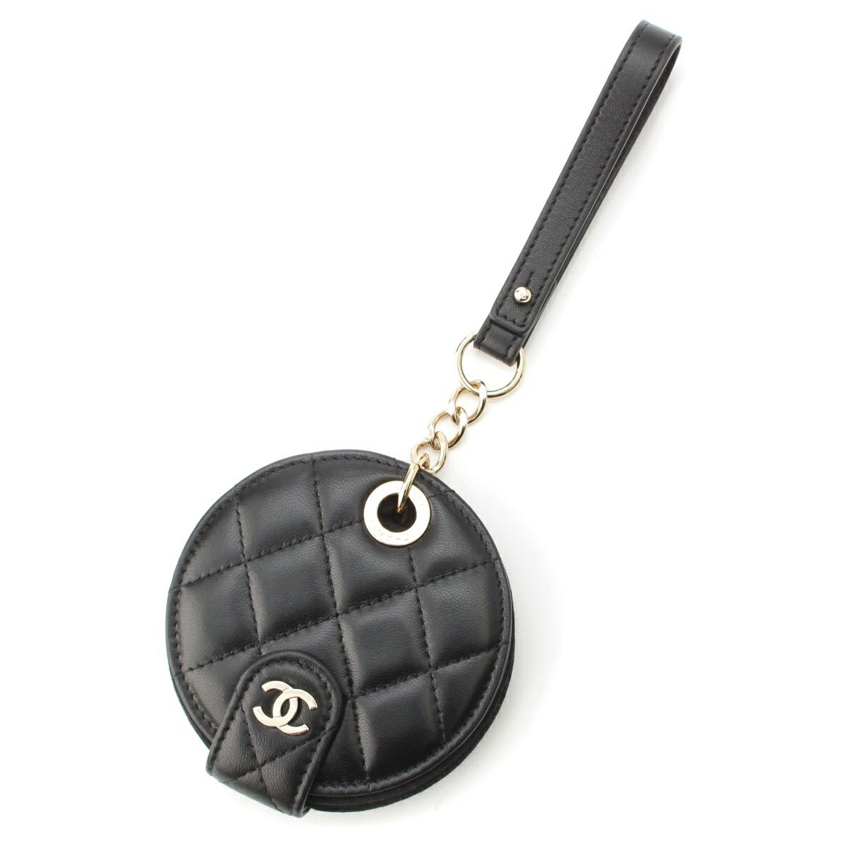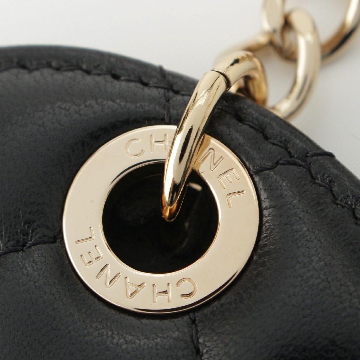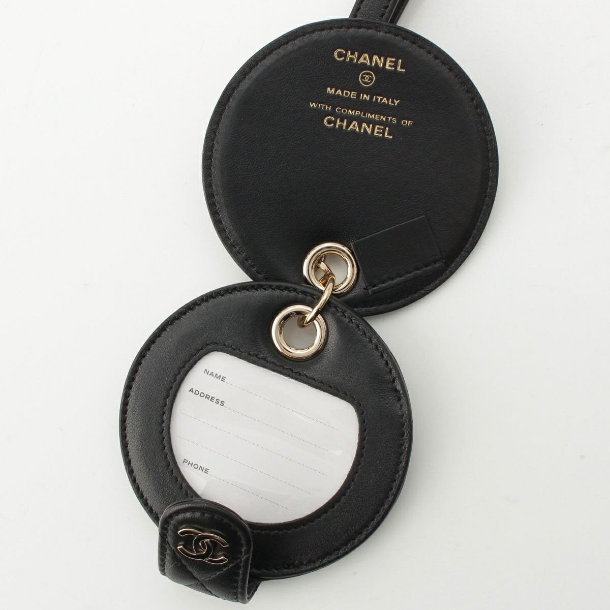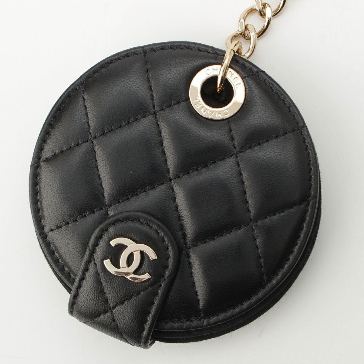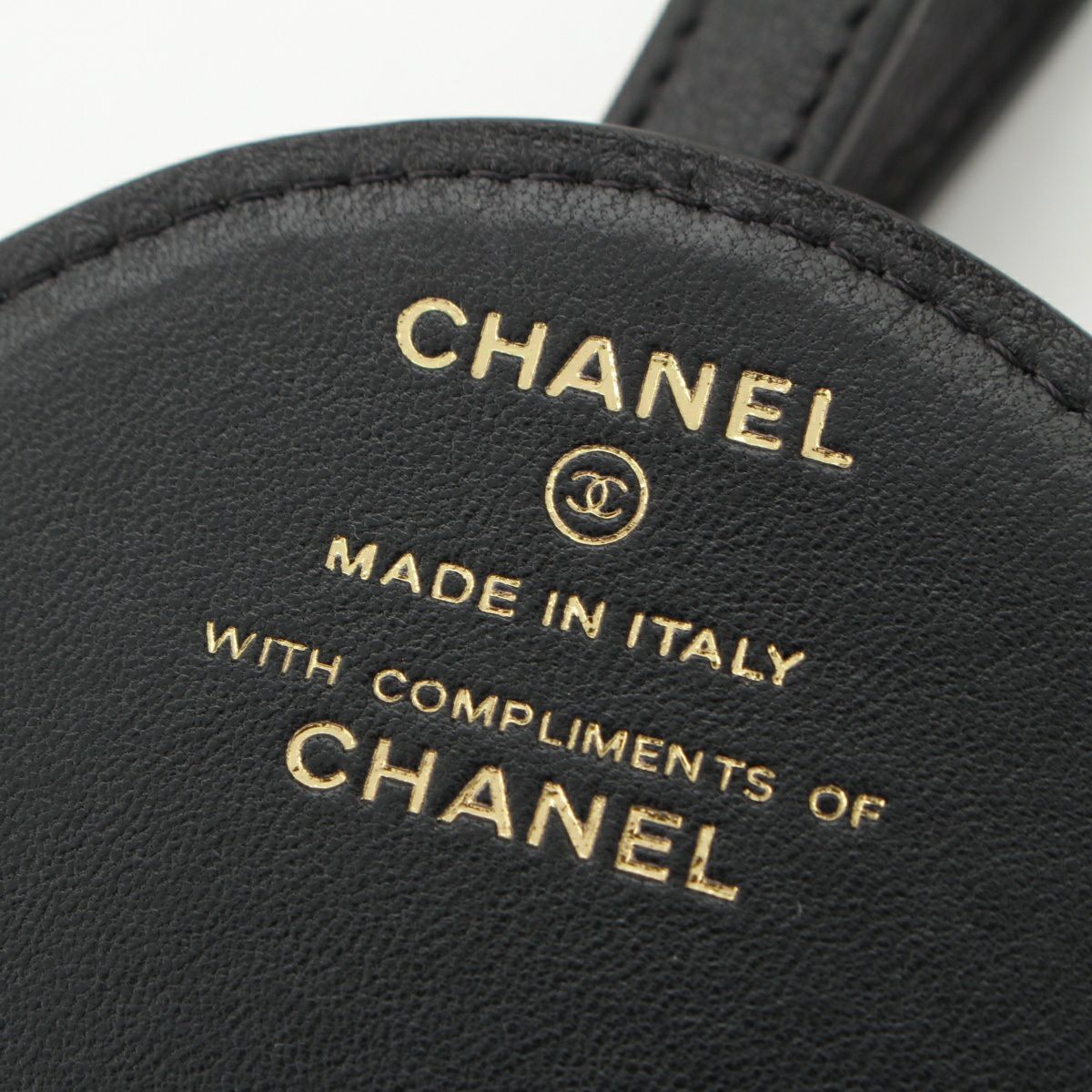シャネル レザー 28番台 ココマーク マトラッセ ラウンド ネームタグ 小物 ブラック