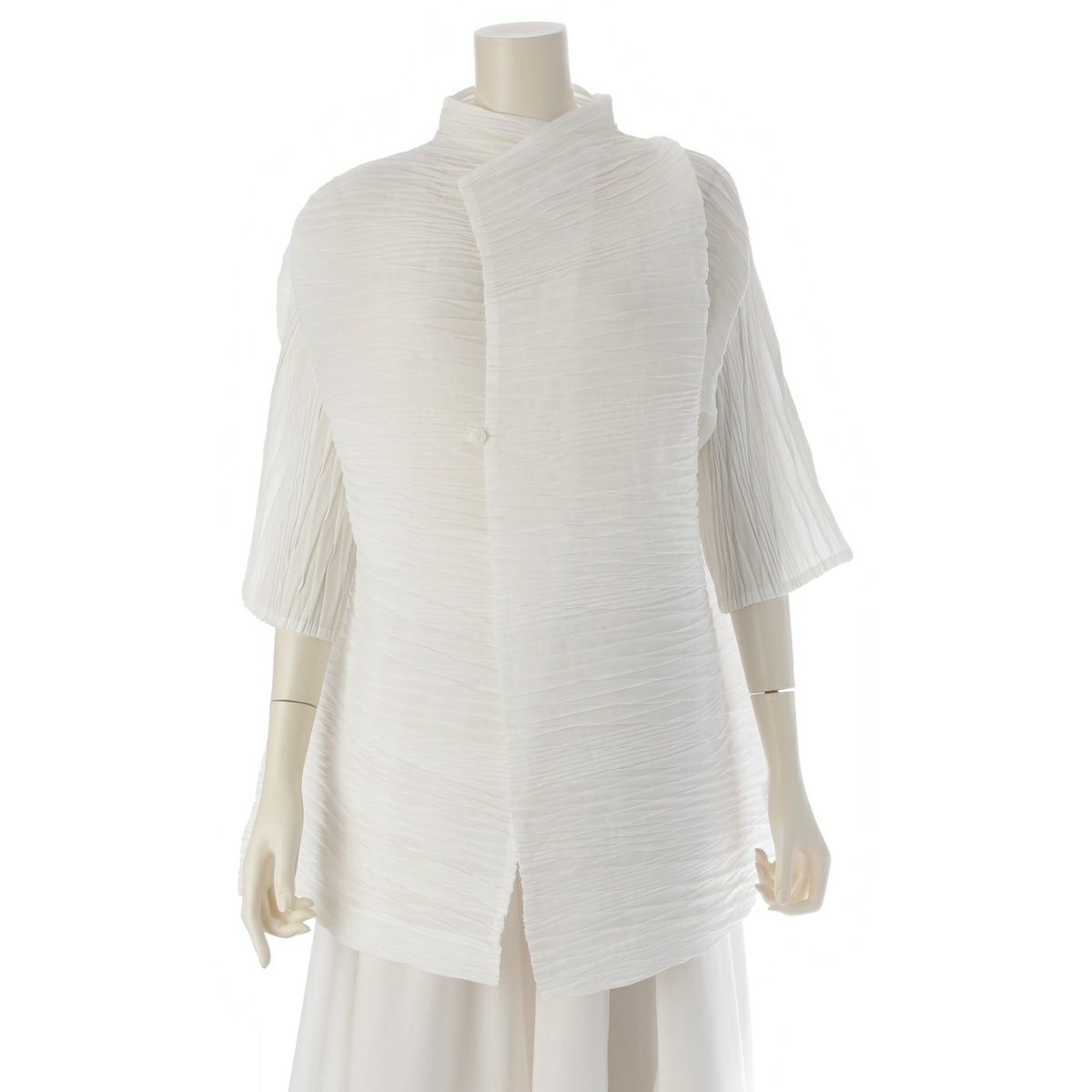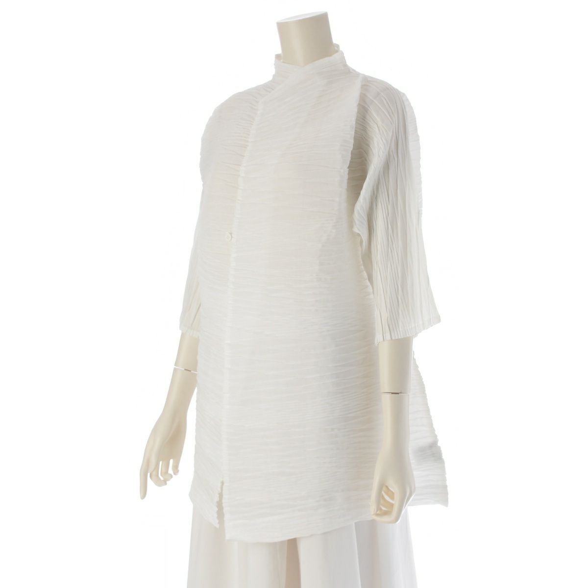 イッセイミヤケ 2019年 19SS 斜め バウンスプリーツ ジャケット 羽織り IM92FO633 ホワイト 2