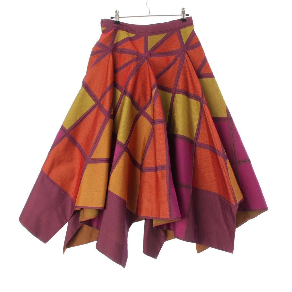 イッセイミヤケ 15AW スチーム ストレッチ フレア スカート IM54FG517 ピンク×ゴールド マルチカラー 2