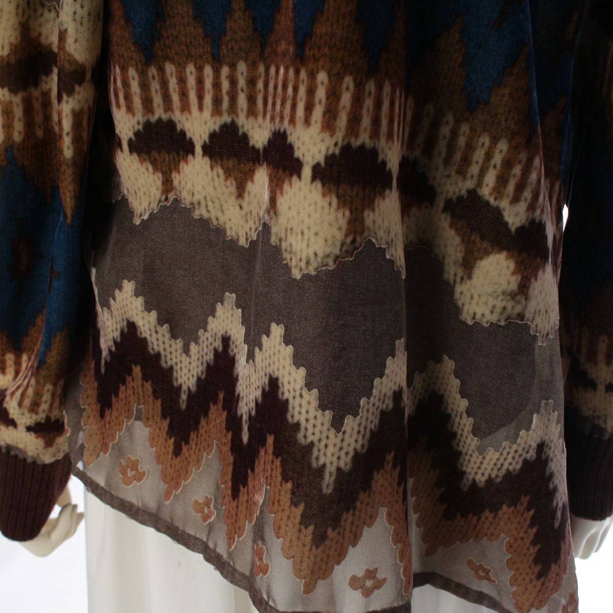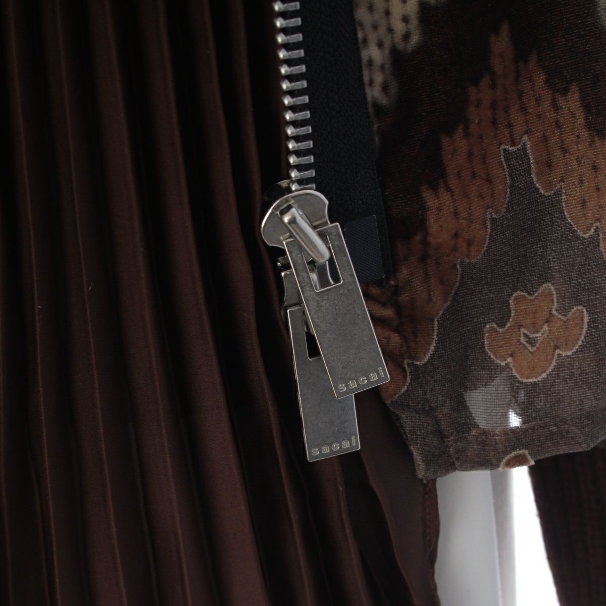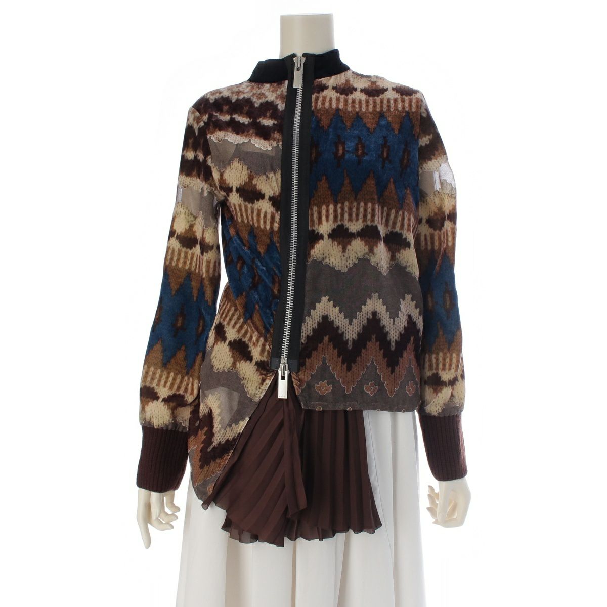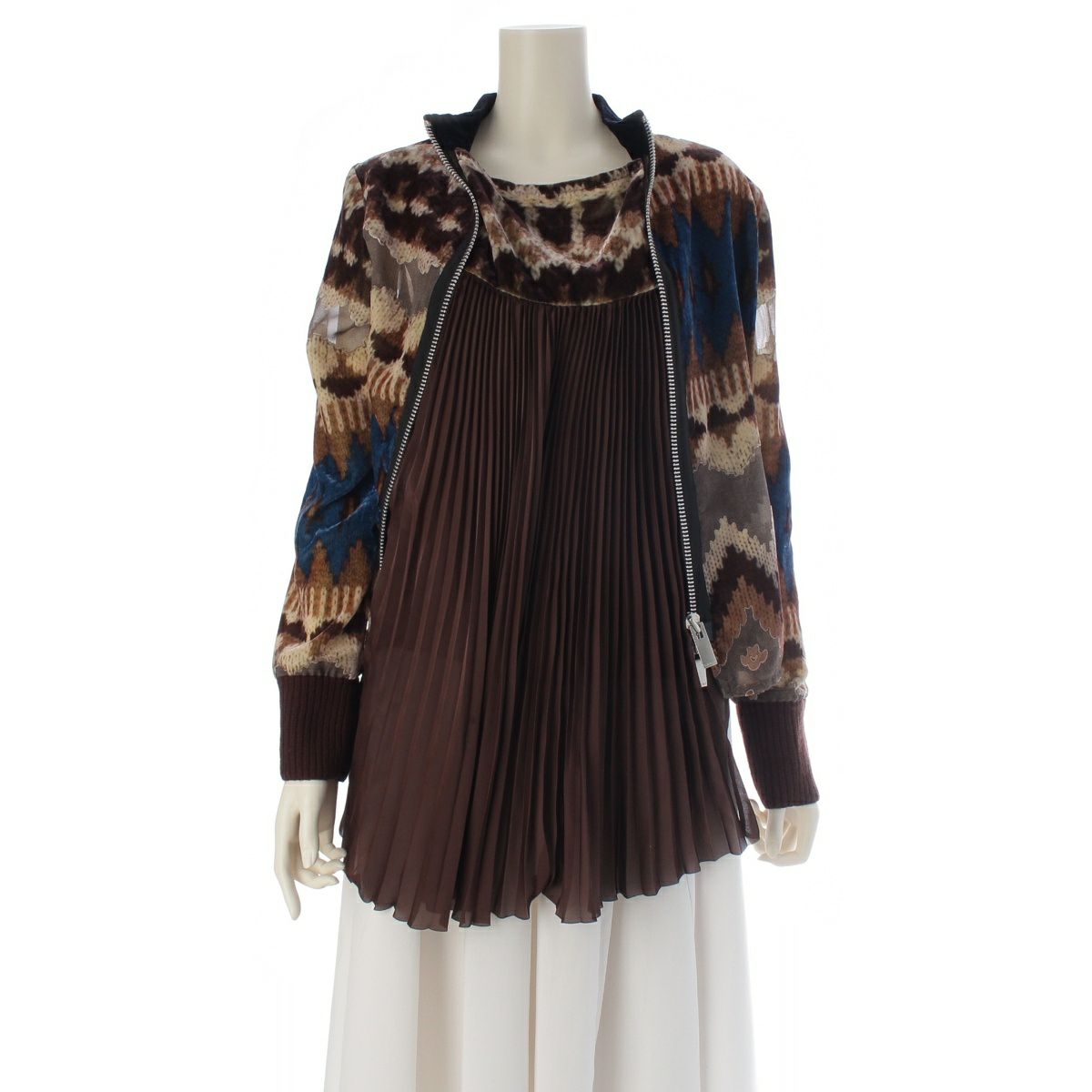 サカイ 20年 レーヨン ノルディック柄 ベルベット プリーツドッキング ペチコート インナー付 ジップデザイン ブルゾン ブラウン系