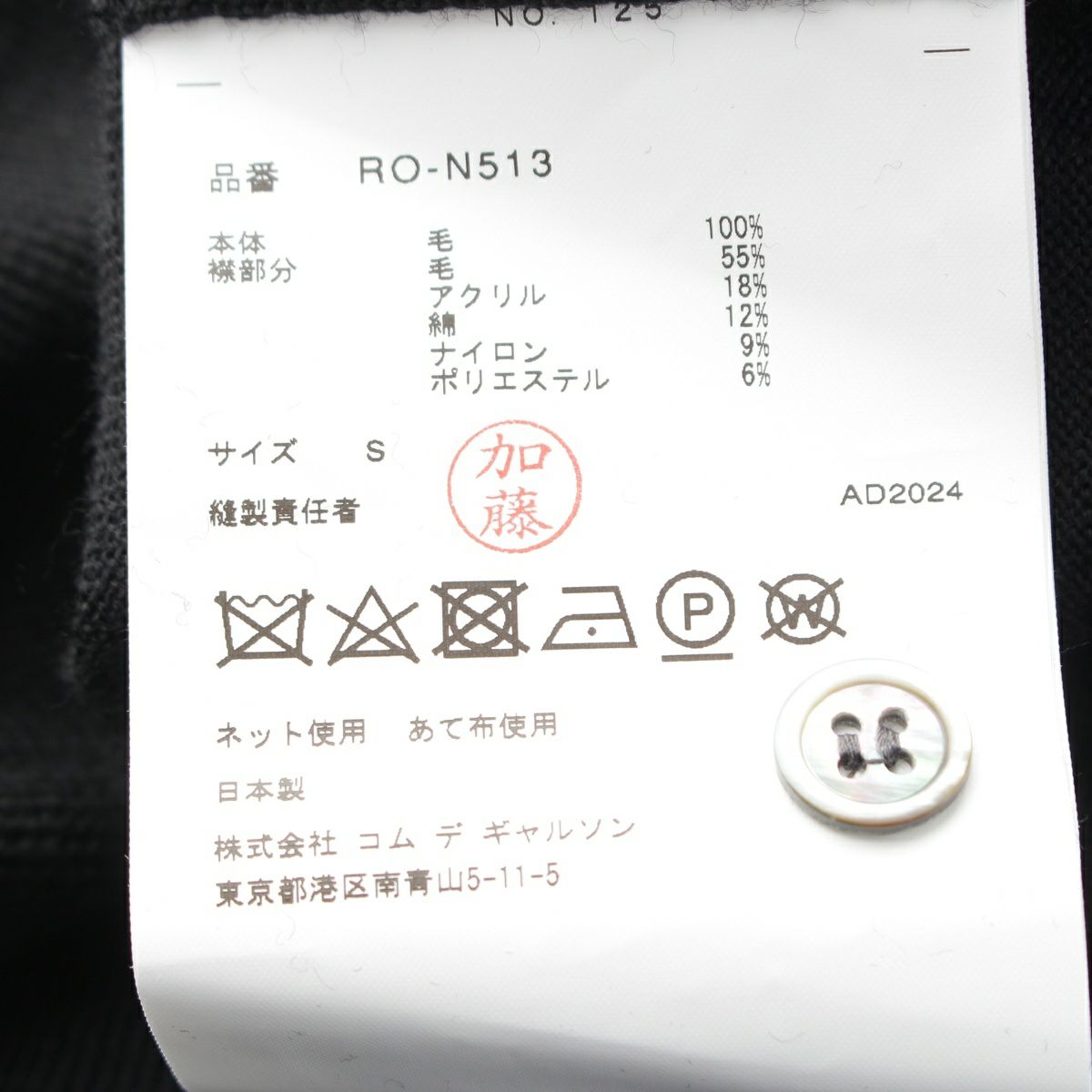 コムデギャルソン コムデギャルソン AD2024 25SS ウール 付け襟 2WAY 長袖 カーディガン RO-N513 ブラック S