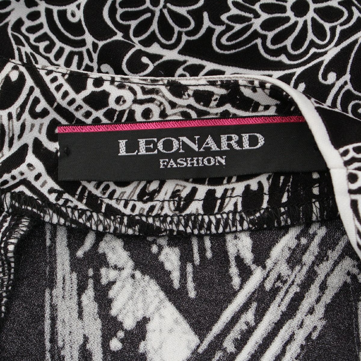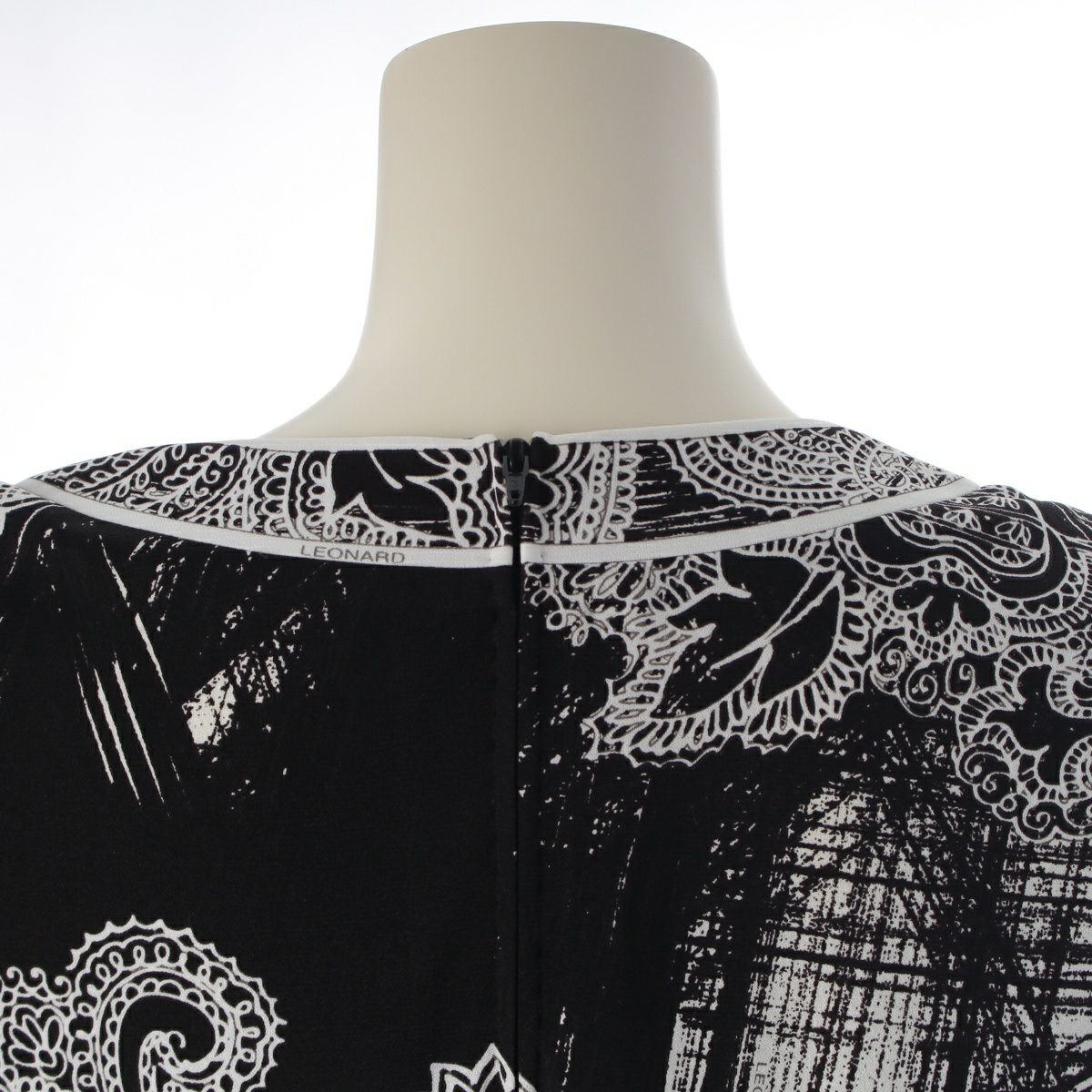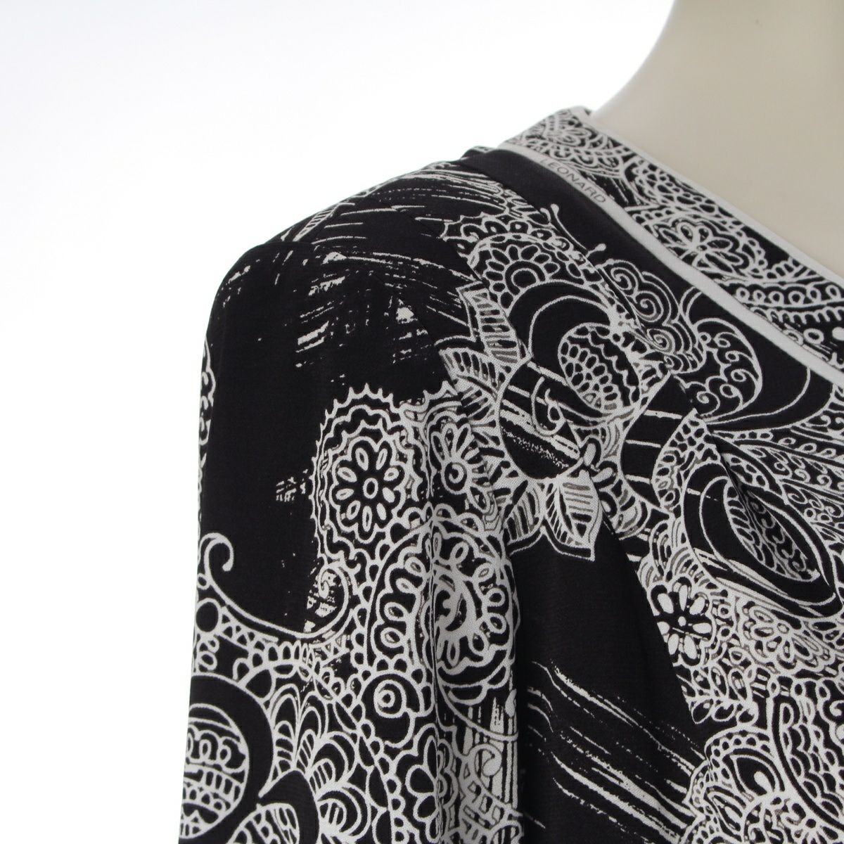 レオナール カンカン 総柄 ロングスリーブ カットソー チュニック 0199223 ブラック×ホワイト 42