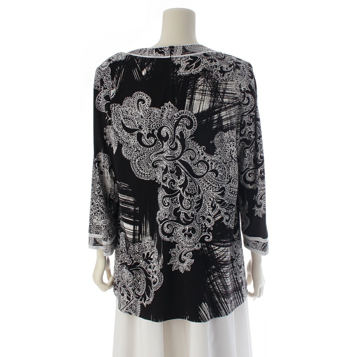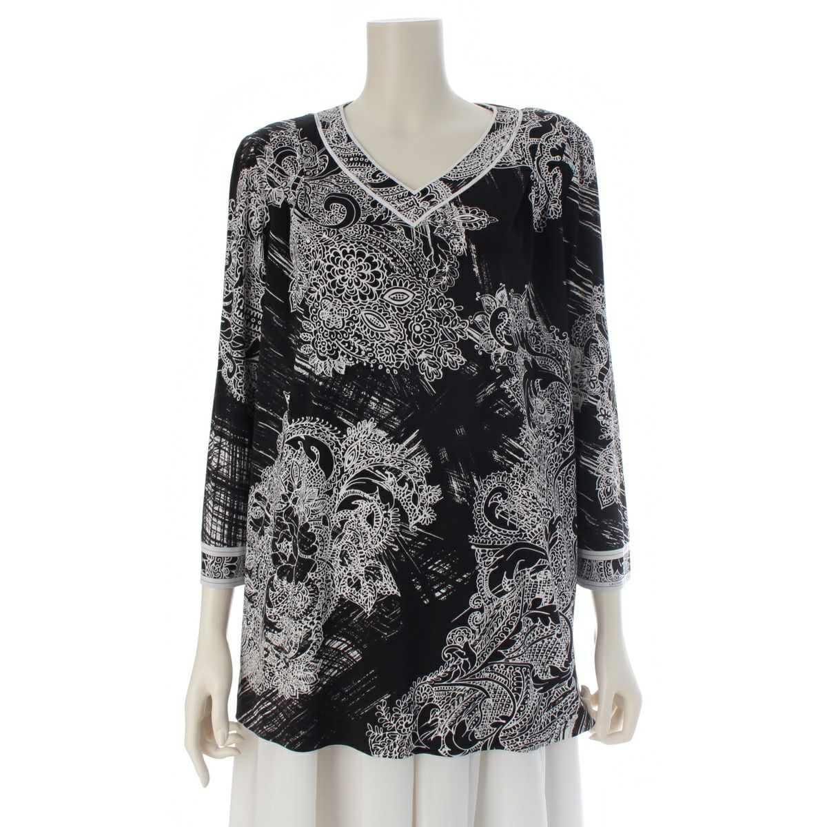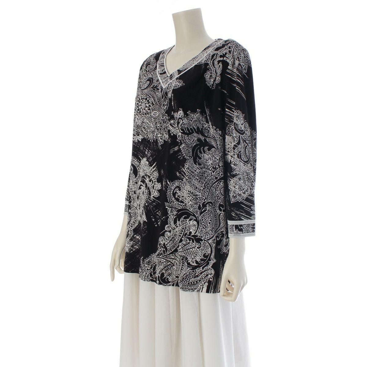 レオナール カンカン 総柄 ロングスリーブ カットソー チュニック 0199223 ブラック×ホワイト 42