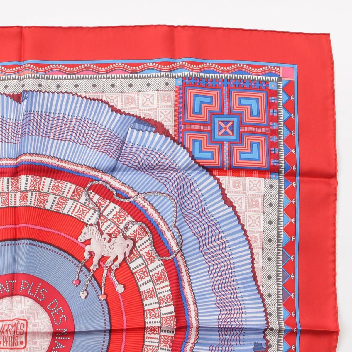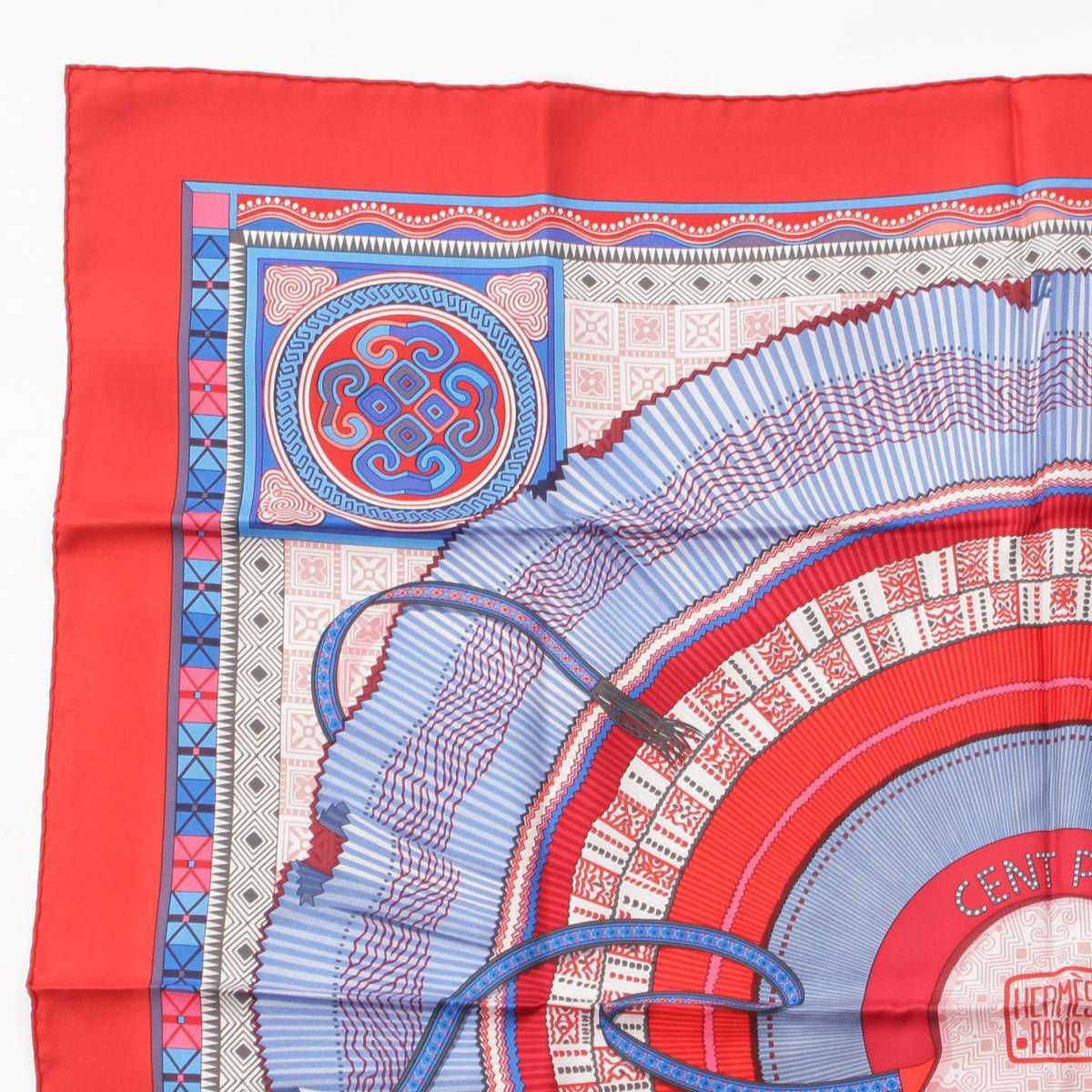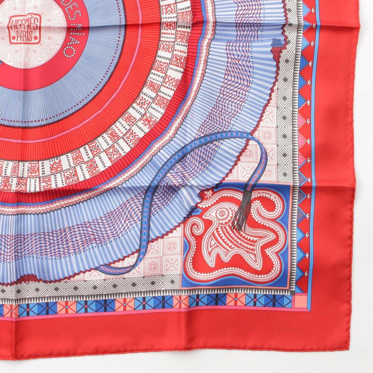 エルメス Hermes カレ90 CENT PLIS DES MIAO 芽家のプリーツ シルクスカーフ レッド