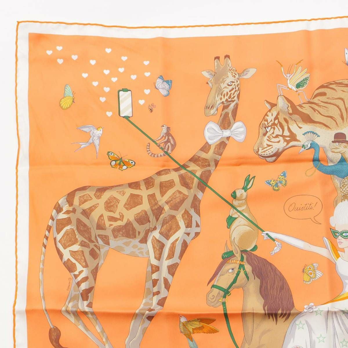 エルメス カレ90 STORY エルメス ストーリー アニマル 総柄 スカーフ オレンジ