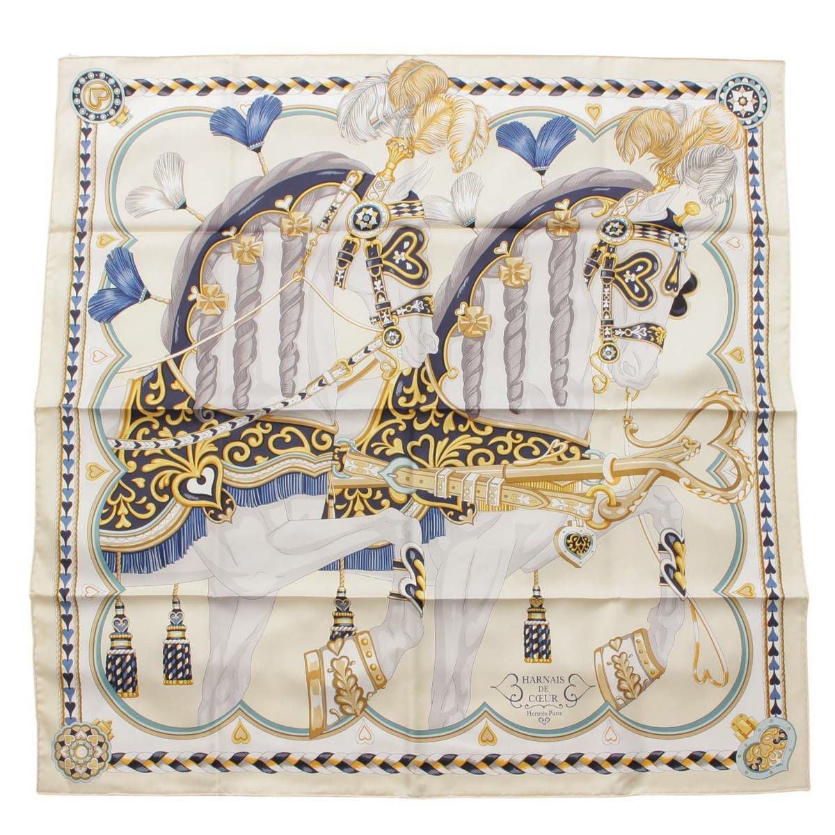 エルメス 24SS カレ90 シルク スカーフ harnais de coeur アルネ ドゥ クール アイボリー