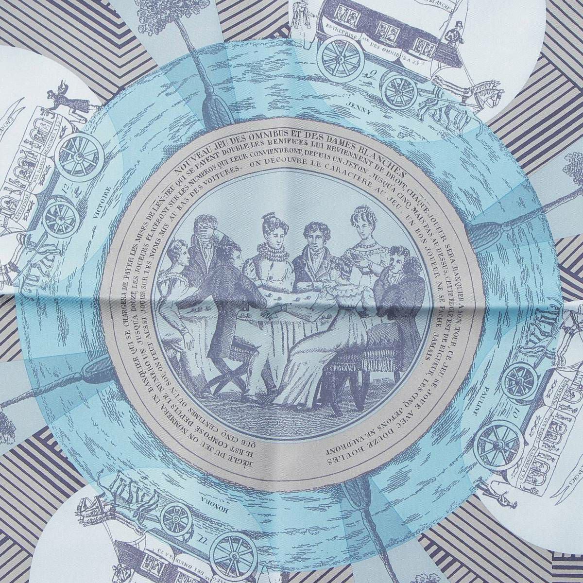 エルメス カレ90 JEU DES OMNIBUS REMIX オムニバスゲーム リミックス シルクスカーフ ブルー
