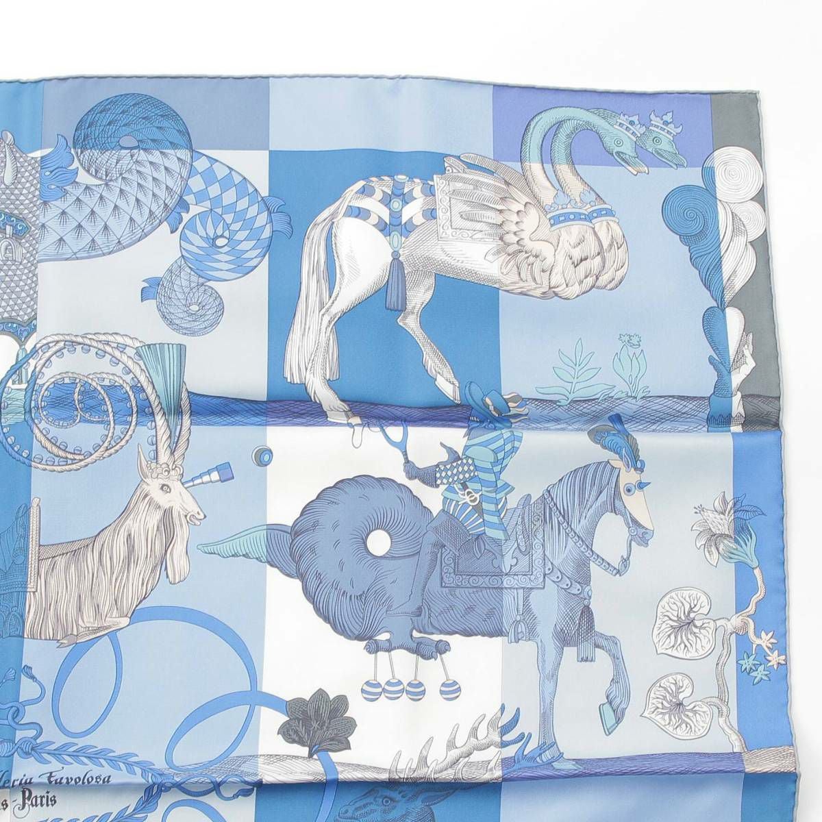 エルメス カレ90 デッラ カヴァッレリア ファヴォローサ シルクスカーフ ブルー