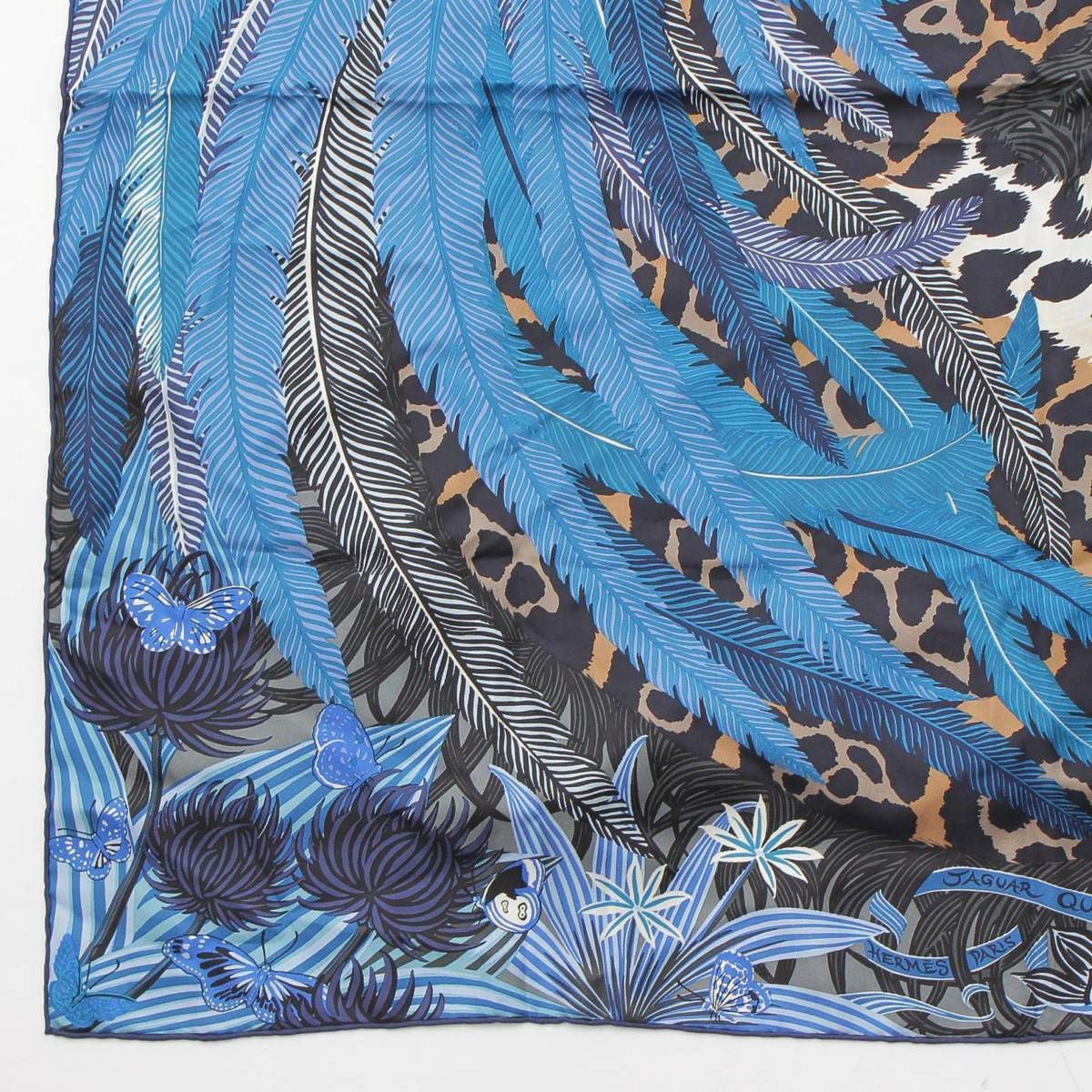 エルメス Hermes カレ90 JAGUAR QUETZAL ジャガー ケツァール シルク 総柄 スカーフ ブルー