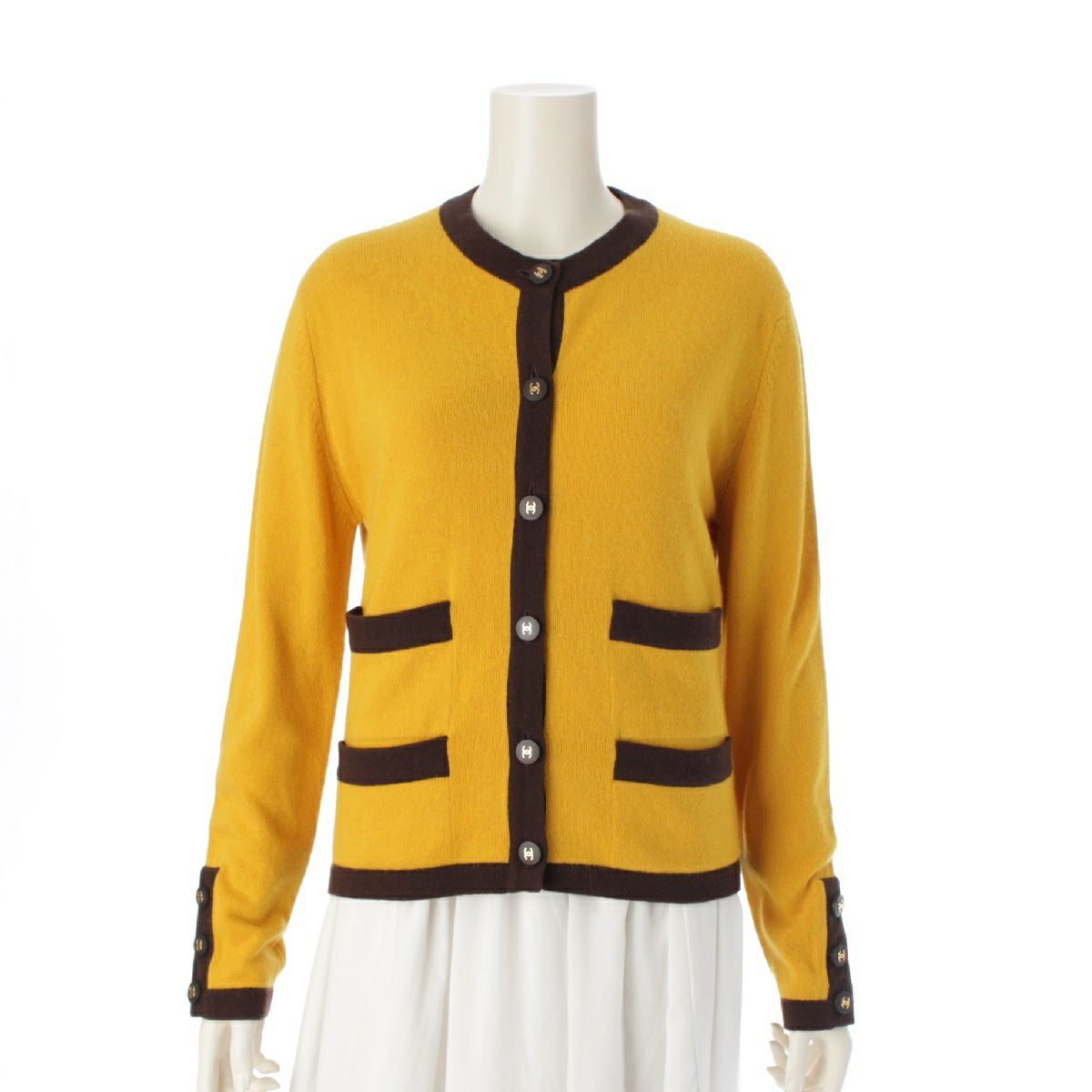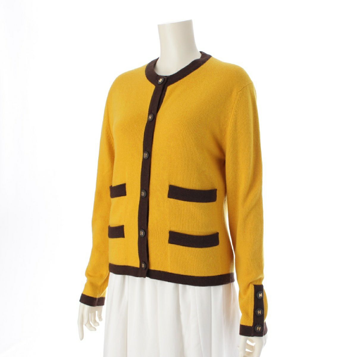 シャネル 96A カシミヤ ヴィンテージ ココマークボタン トリム ニット アンサンブル 半袖トップス カーディガン 4ポケット PO8080 イエロー