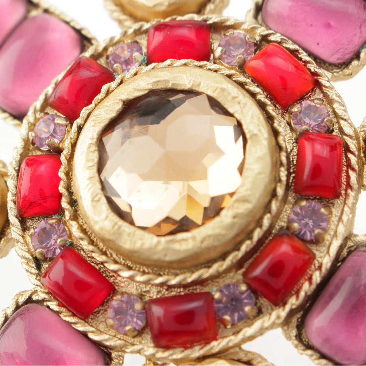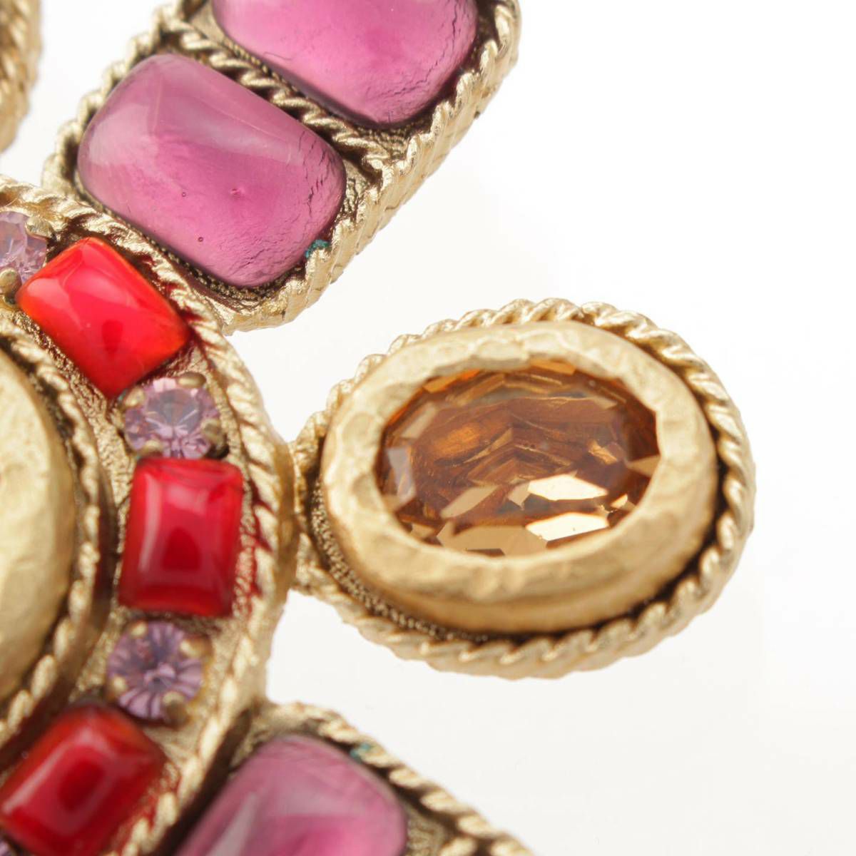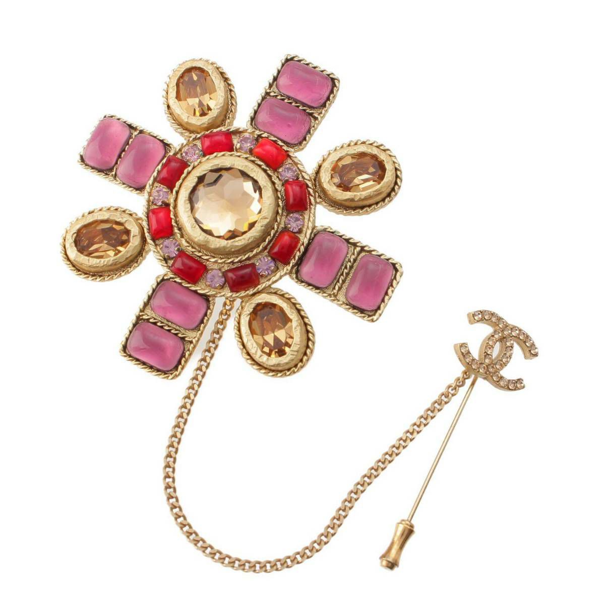 シャネル 02P グリポア カラーストーン ココマーク チェーン ブローチ アクセサリー パープル