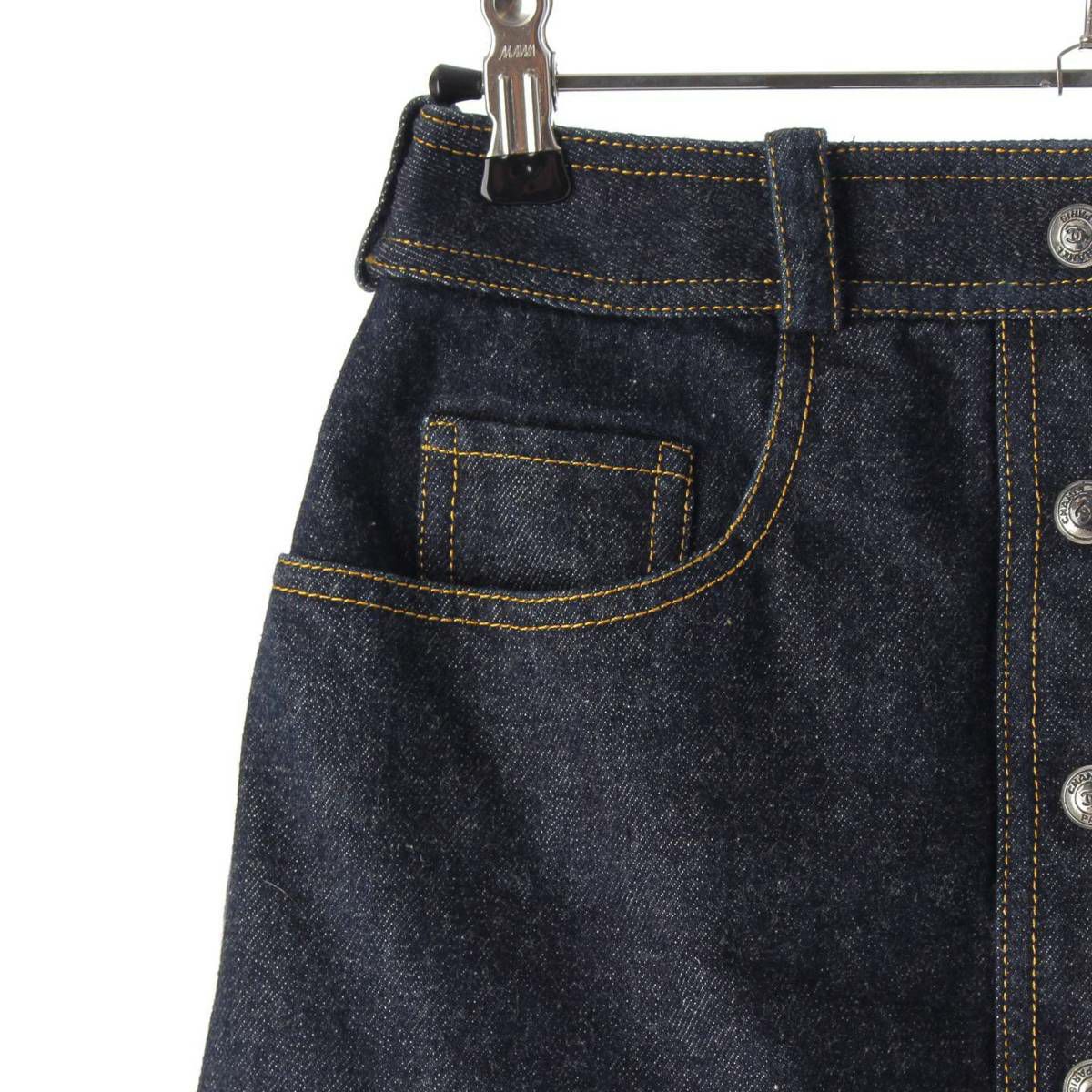 他の画像を見る CHANEL シャネル 94年 コットン ヴィンテージ ココマーク セーラータイプ デニム ミニスカート タイト 金ボタン P03207 インディゴ ブルー 40 在庫切れ お気に入りに登録する 当店特別価格 ¥ 66,000 税込 円 60,000円