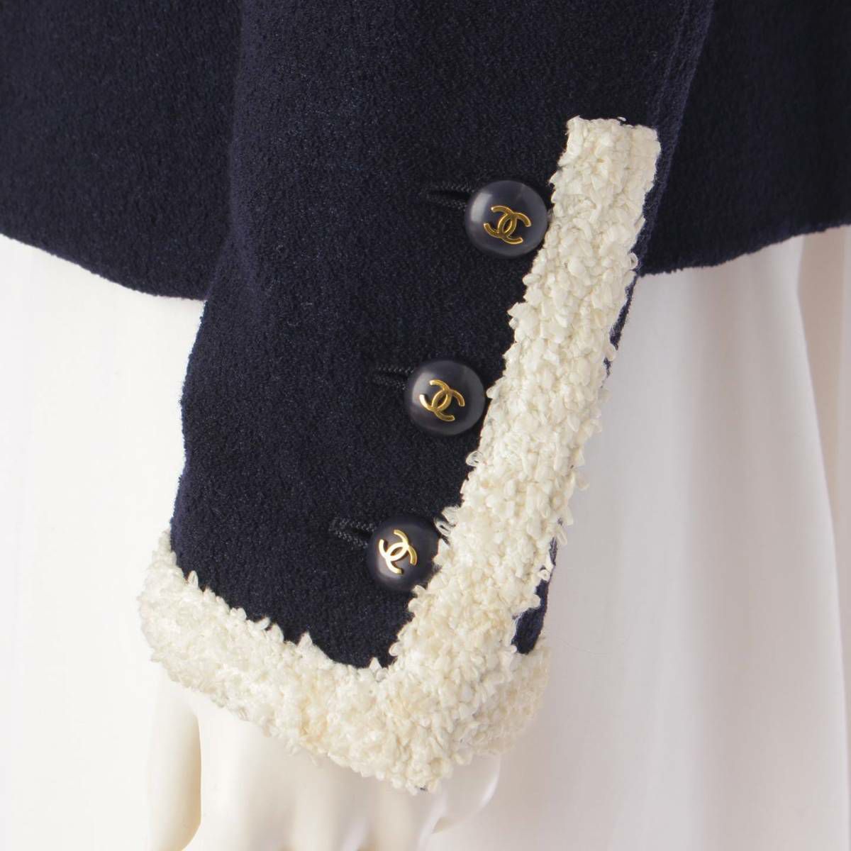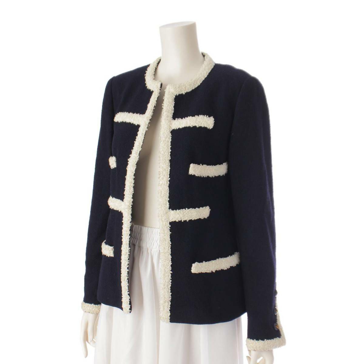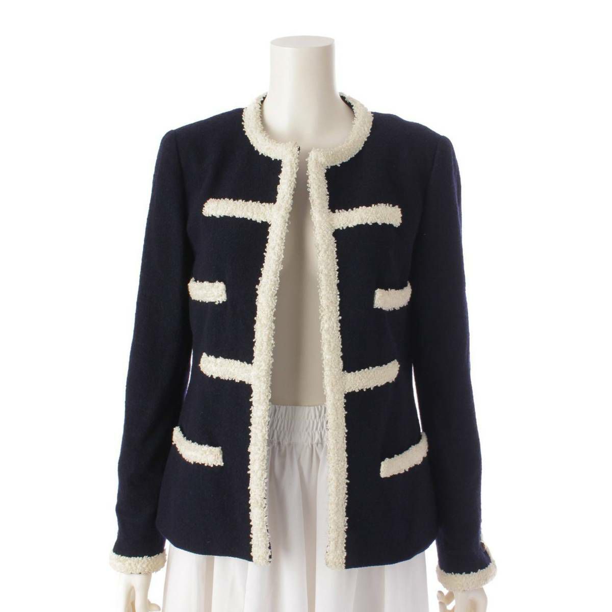 他の画像を見る シャネル Chanel 95C トリミング ツイード ココボタン ノーカラー ジャケット ネイビー 38 在庫切れ お気に入りに登録する 当店通常価格 ¥ 770,000 のところ 当店特別価格 ¥ 708,400 税込 700,000円 644,000円