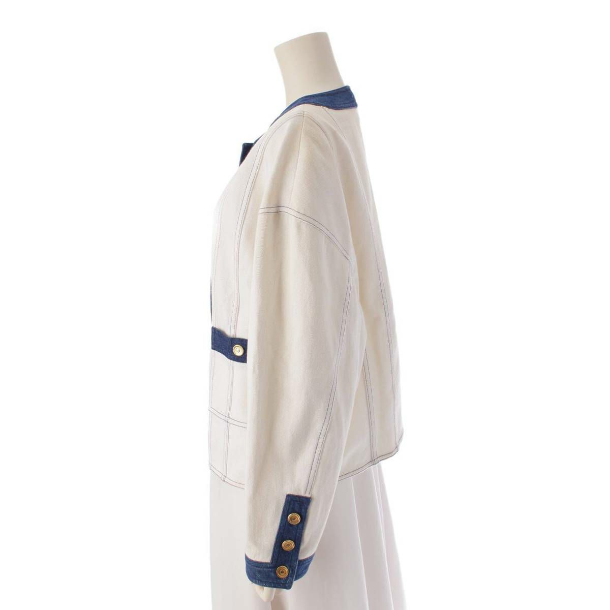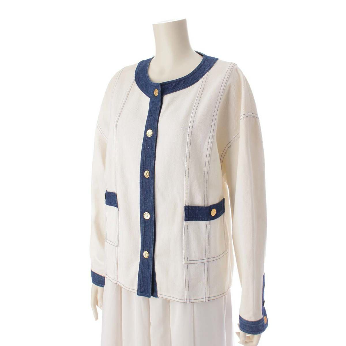 他の画像を見る CHANEL シャネル ヴィンテージ ココボタン デニム ノーカラー ジャケット ホワイト×ブルー 在庫切れ お気に入りに登録する 当店通常価格 ¥ 139,700 のところ 当店特別価格 ¥ 99,000 税込 127,000円 90,000円