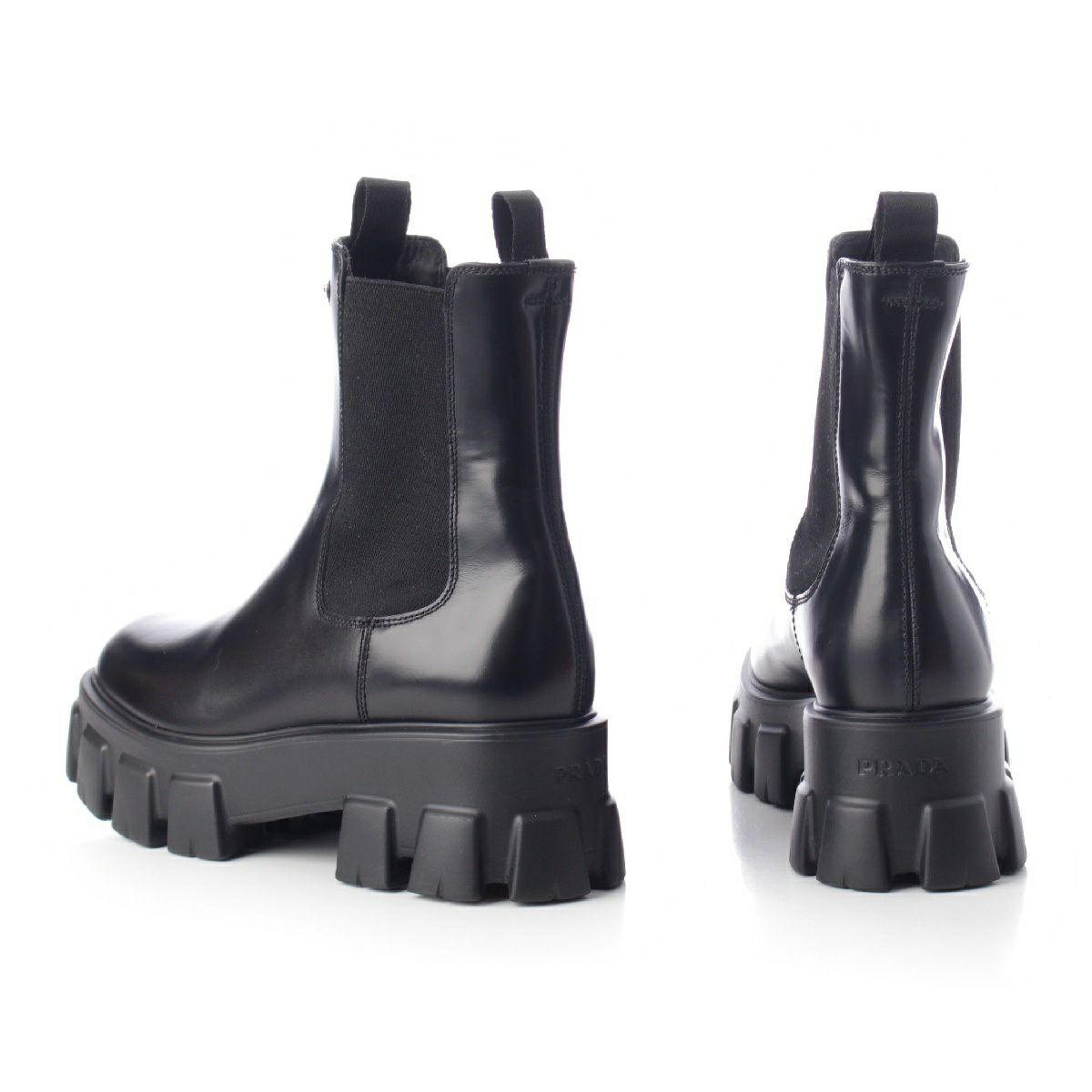 他の画像を見る PRADA プラダ レザー 三角プレート トライアングルロゴ サイドゴア 厚底 ブーツ アンクル ショート シューズ ブラック 38 在庫切れ 再入荷お知らせ お気に入りに登録する 当店特別価格 ¥ 110,000 税込 円 100,000円