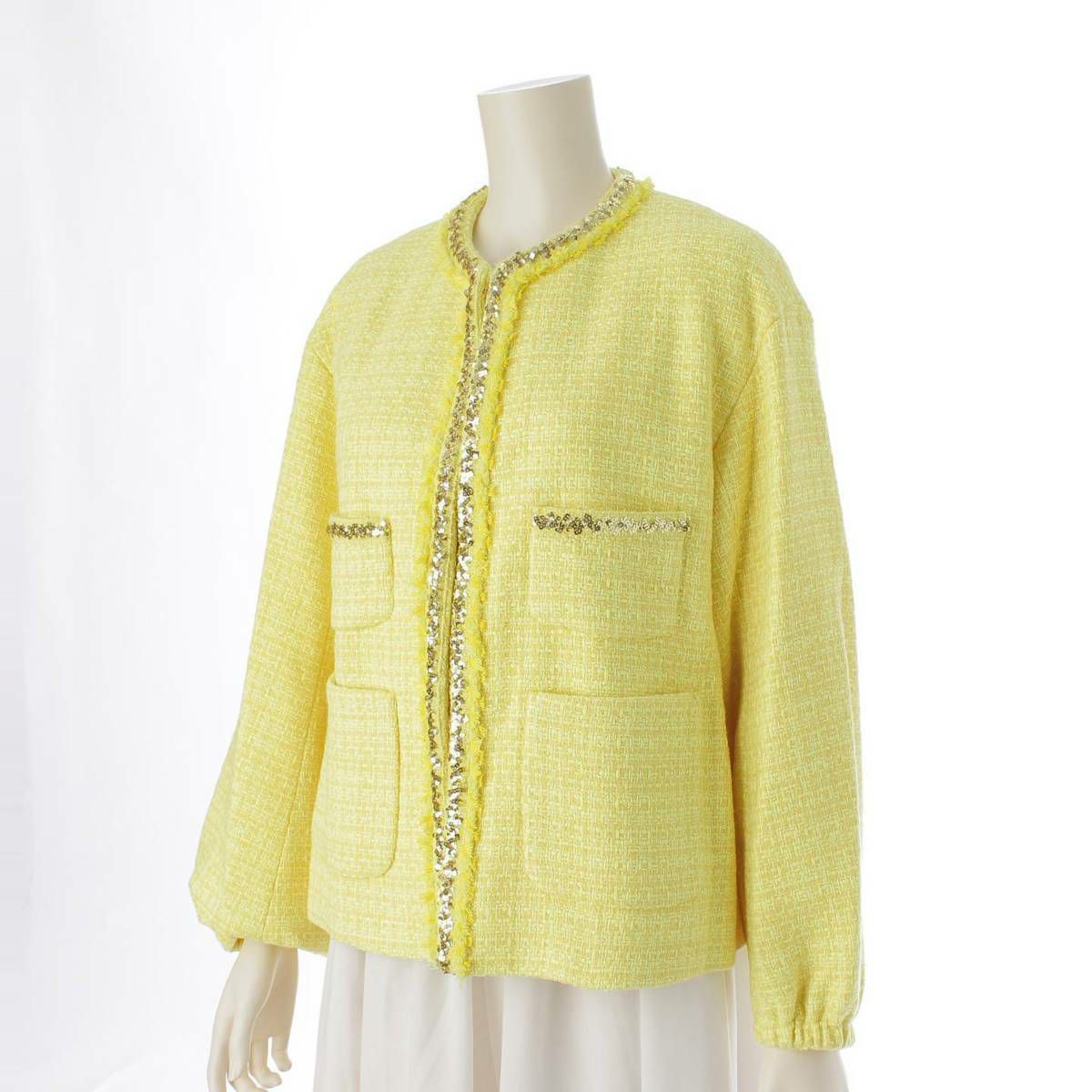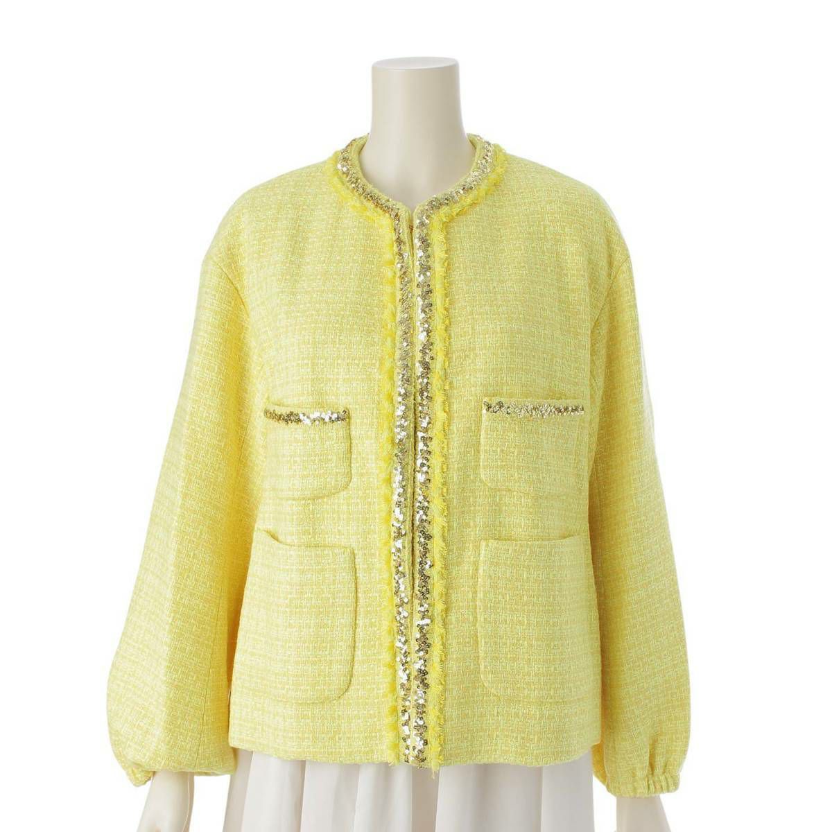 他の画像を見る ドゥロワー DRAWER 22SS コットン ウール ツイード スパンコール ノーカラージャケット イエロー 36 在庫切れ 再入荷お知らせ お気に入りに登録する ¥ 33,000 税込 円 30,000円