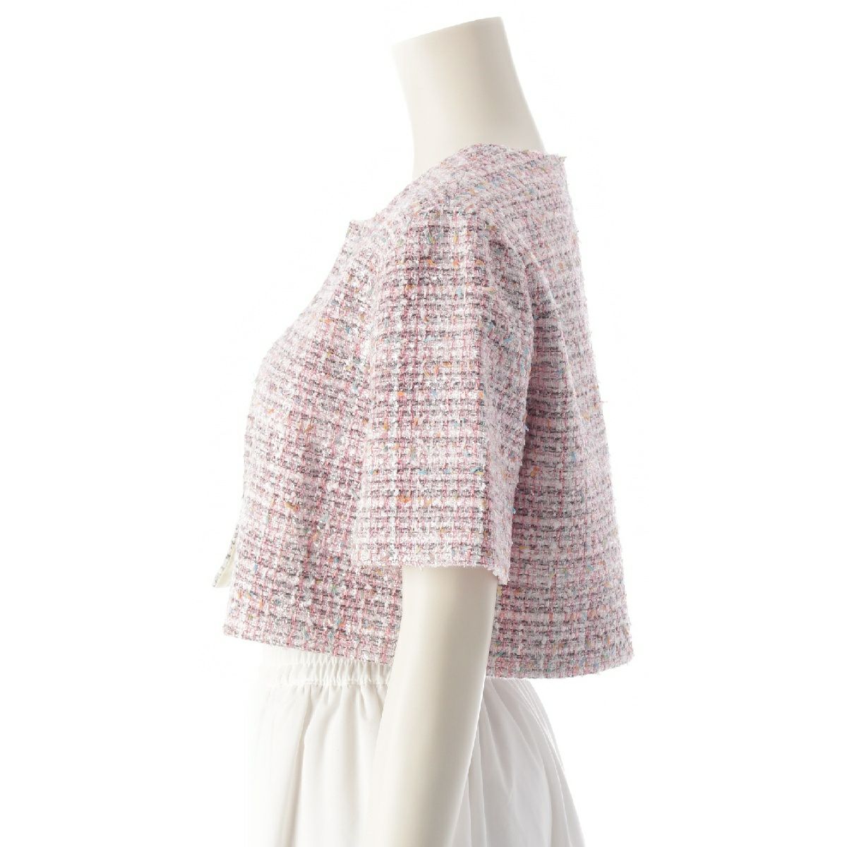 他の画像を見る MADISON BLUE マディソンブルー 24SS ナイロン×コットン ツイード 半袖 クロップド ノーカラージャケット トップス MB241-1002 ピンク グレー マルチカラー S 在庫切れ 再入荷お知らせ お気に入りに登録する 当店特別価格 ¥ 27,500 税込 円 25,000円