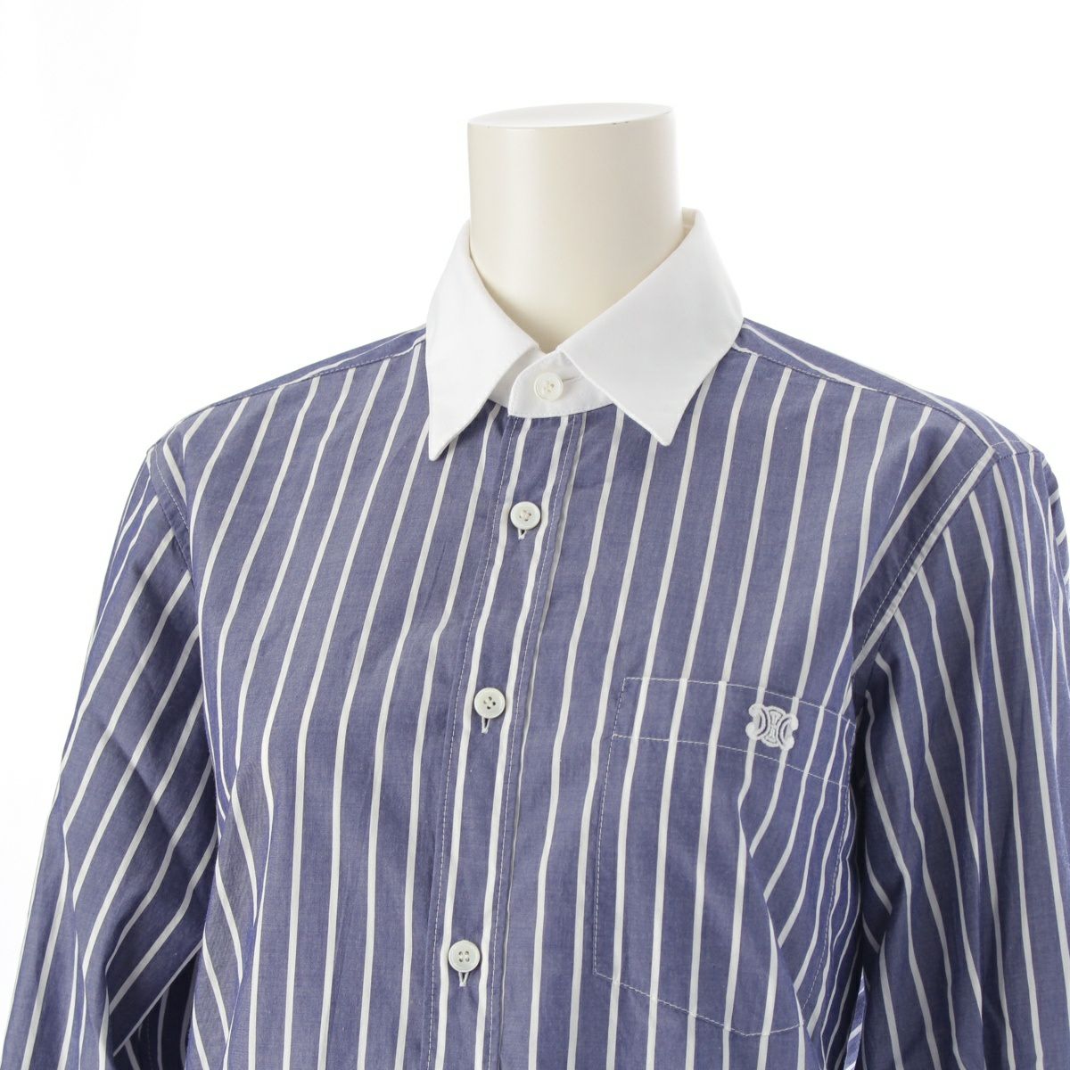 他の画像を見る CELINE セリーヌ ロゴ トリオンフ刺繍 ストライプ 長袖シャツ ブルー×ホワイト 34 在庫切れ 再入荷お知らせ お気に入りに登録する 当店特別価格 ¥ 33,000 税込 円 30,000円
