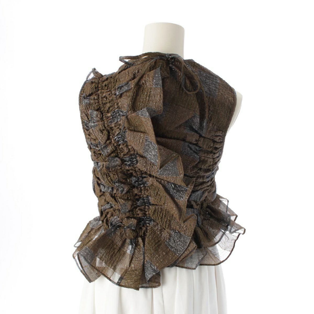 他の画像を見る Cecilie Bahnsen セシリーバンセン 24AW GEO TOP ジオトップ シルク ウール シャーリング ギンガムジャガード アシンメトリー フリル トップス ノースリーブ ブラウス 2.24RTW11011 ブラウン UK10 在庫切れ 再入荷お知らせ お気に入りに登録する 当店特別価格 ¥ 38,500 税込 円 35,000円