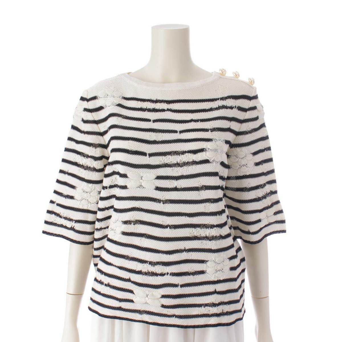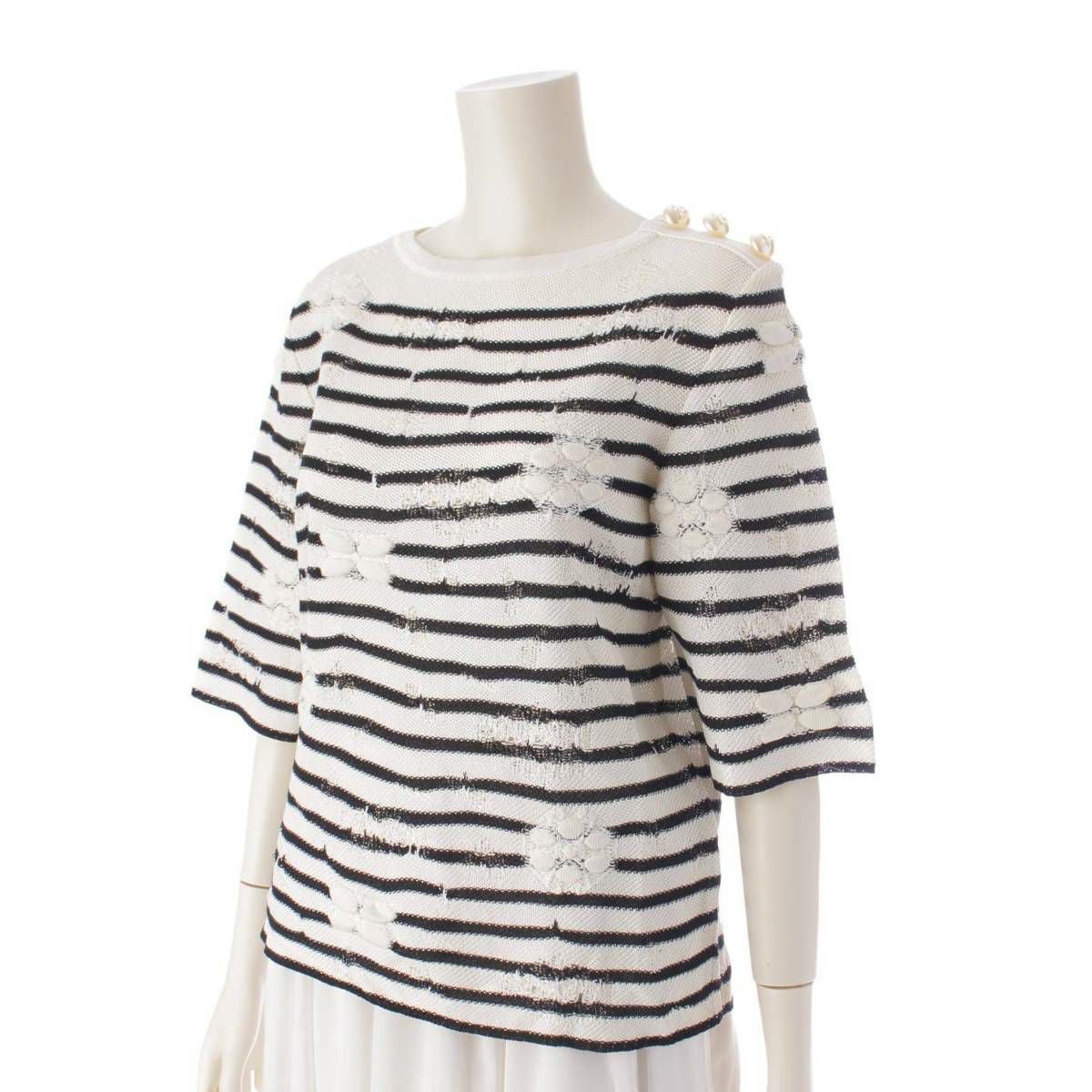 他の画像を見る シャネル Chanel Fパールボタン ボーダー柄 半袖 ニット セーター P56073 ホワイト×ブラック 36 在庫切れ 再入荷お知らせ お気に入りに登録する ¥ 66,000 税込 円 60,000円