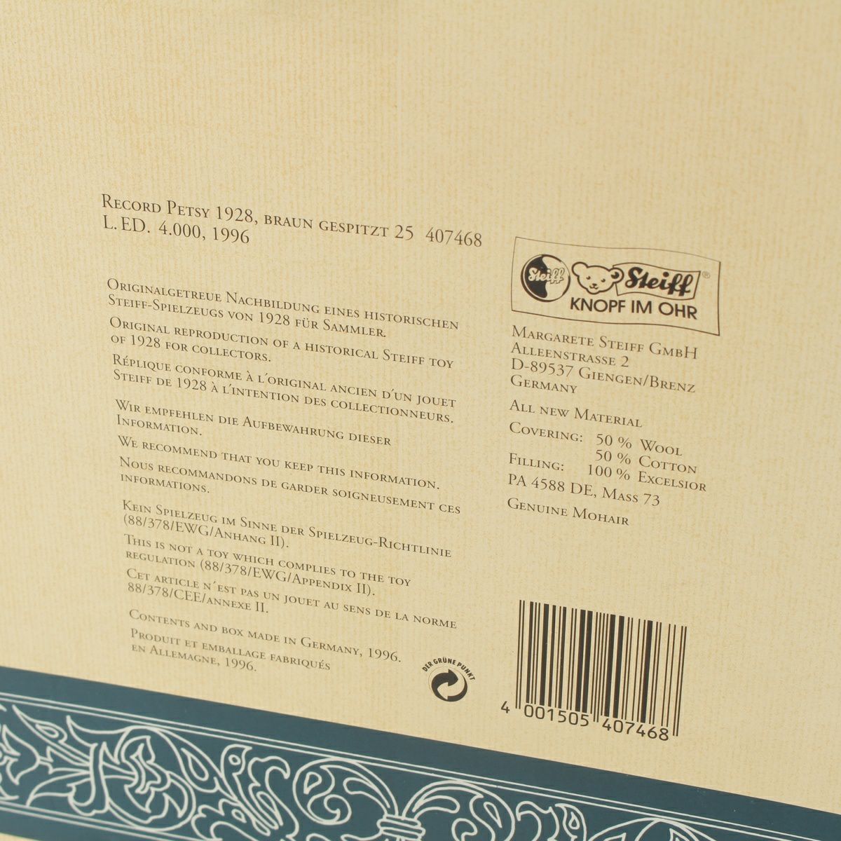 他の画像を見る Steiff シュタイフ レコードパーティ レプリカ テディベア おもちゃ・玩具 ぬいぐるみ 407468 ブラウン 在庫切れ 再入荷お知らせ お気に入りに登録する 当店特別価格 ¥ 14,300 税込 円 13,000円