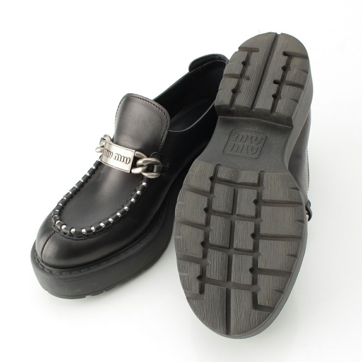 他の画像を見る MIUMIU ミュウミュウ レザー プラットフォーム ロゴプレート ローファー シューズ ブラック 38 在庫切れ 再入荷お知らせ お気に入りに登録する 当店特別価格 ¥ 39,600 税込 円 36,000円