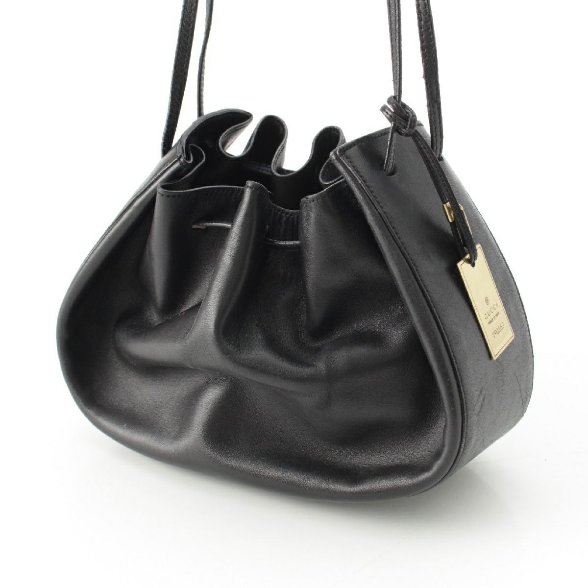 他の画像を見る GUCCI グッチ レザー ロゴプレート付き 巾着型 ショルダーバッグ 90663 ブラック 在庫切れ 再入荷お知らせ お気に入りに登録する 当店通常価格 ¥ 17,600 のところ 当店特別価格 ¥ 16,500 税込 16,000円 15,000円