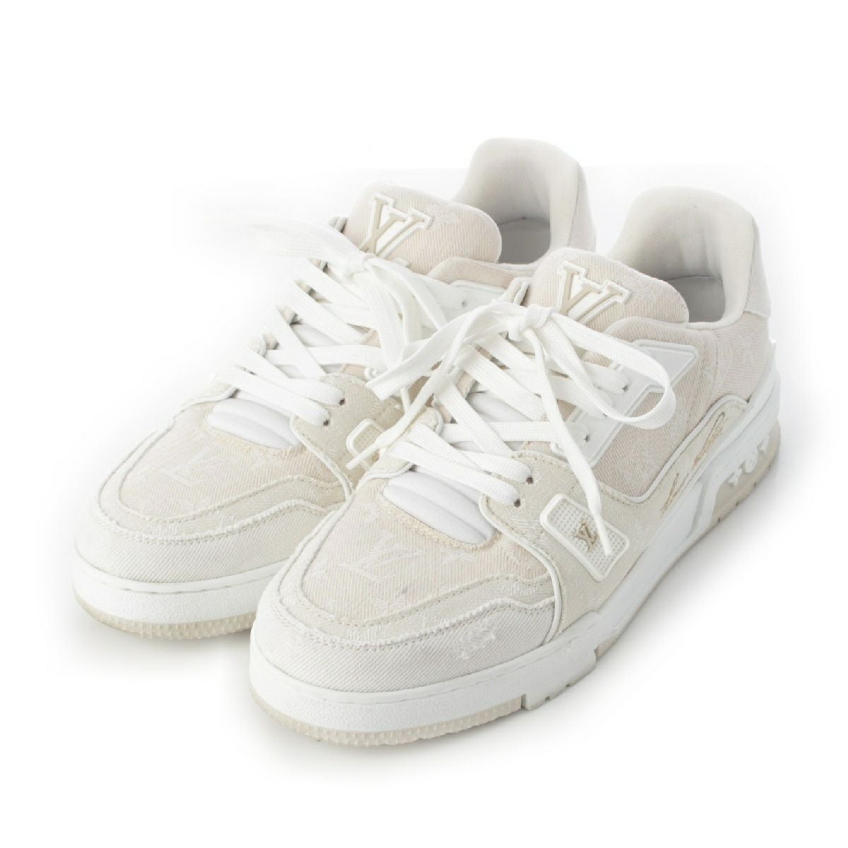 他の画像を見る LOUIS VUITTON ルイヴィトン LVトレイナー モノグラム デニム LVロゴ ゴールド 刺繍 スニーカー シューズ ホワイト アイボリー 7 1/2 在庫切れ 再入荷お知らせ お気に入りに登録する 当店特別価格 ¥ 82,500 税込 円 75,000円