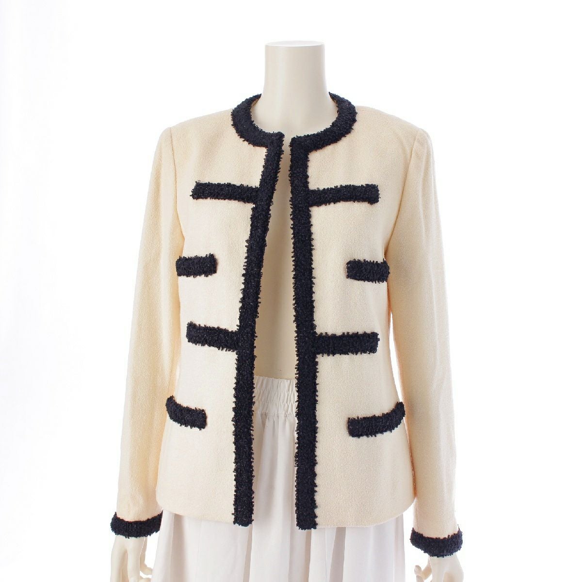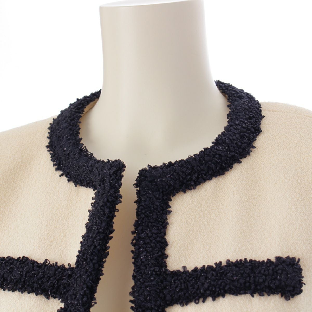 他の画像を見る CHANEL シャネル 95C ツイード トリミング ココボタン ノーカラー ノーカラージャケット アウター ホワイト×ネイビー 在庫切れ 再入荷お知らせ お気に入りに登録する 当店特別価格 ¥ 715,000 税込 円 650,000円